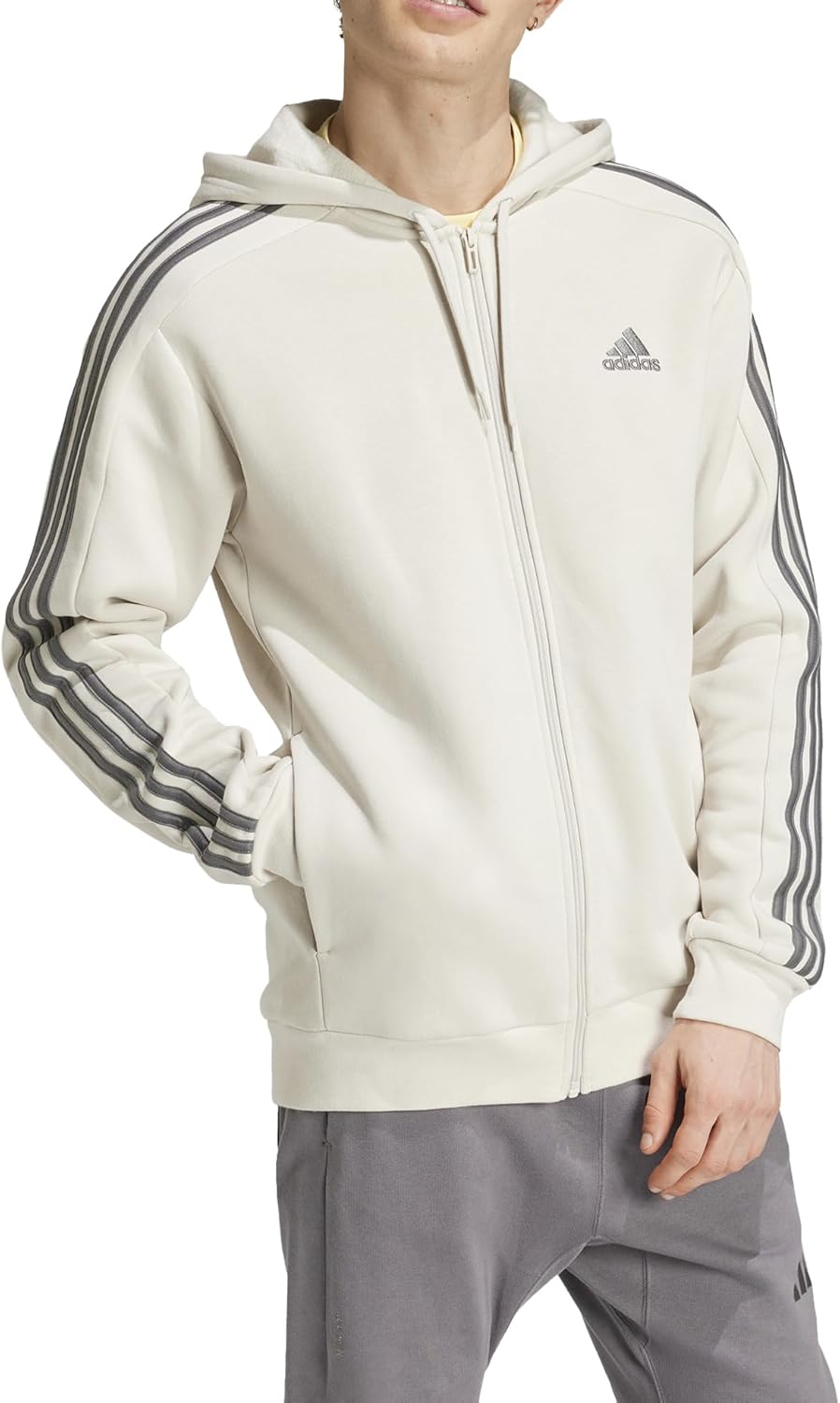 Wenn sie laut werden, werden Sie zurückhaltend. Dieser adidas Hoodie hat viel dezente Attraktivität. Hergestellt aus Fleece aus Baumwollmischgewebe, hält es dank der verstellbaren Kapuze und der gemütlichen Fronttasche vom Kopf bis zu den Händen warm. 3-Streifen an den Schultern verleihen einen klassischen Touch. Ein Minimum von 70% dieses Produkts ist eine Mischung aus recycelten und erneuerbaren Materialien.