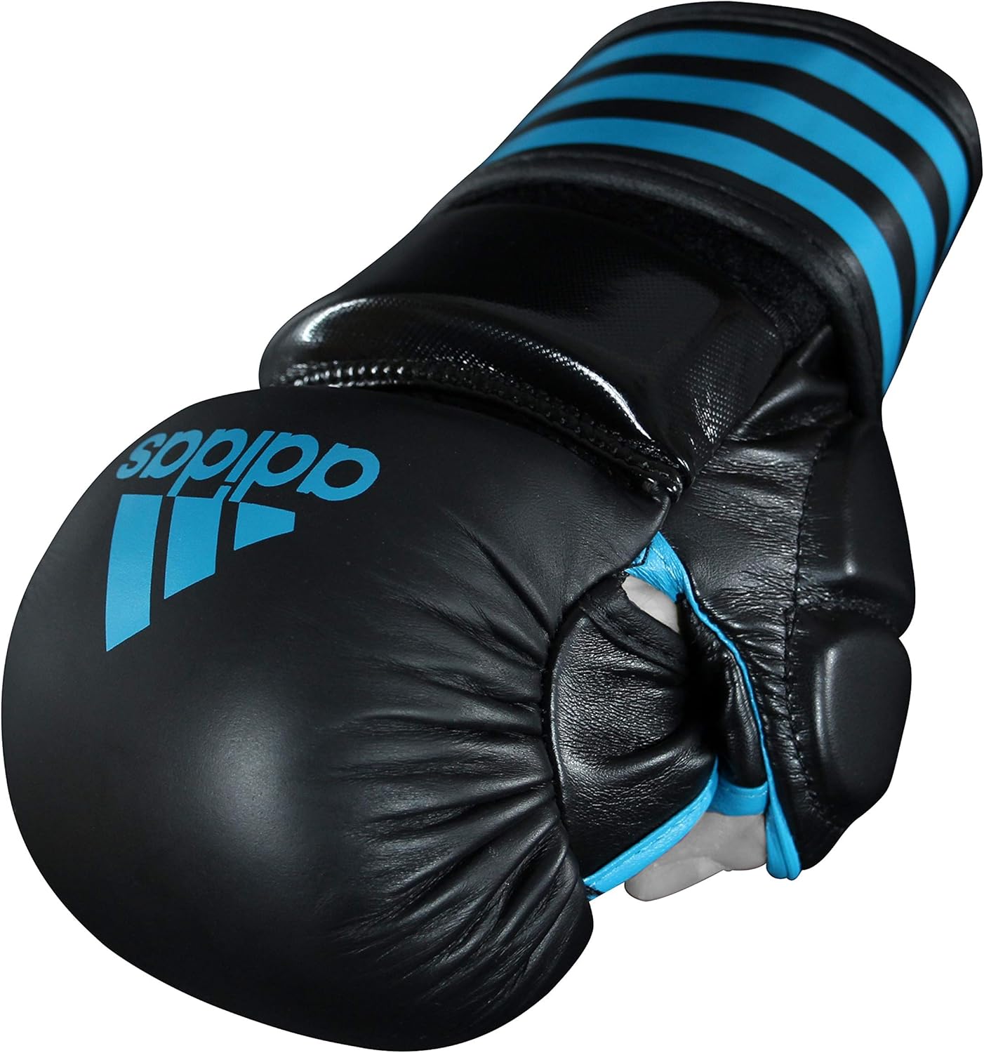Das Äußere besteht aus Kuhläserleder und mit einer dicken EVA -Schicht gepolstert. Die Oberseite des Daumens wurde auch mit Schaumstoffpolster ausgekleidet. Dieser adidas MMA -Handschuh ist ein Maßstab in Bezug auf den Schutz.