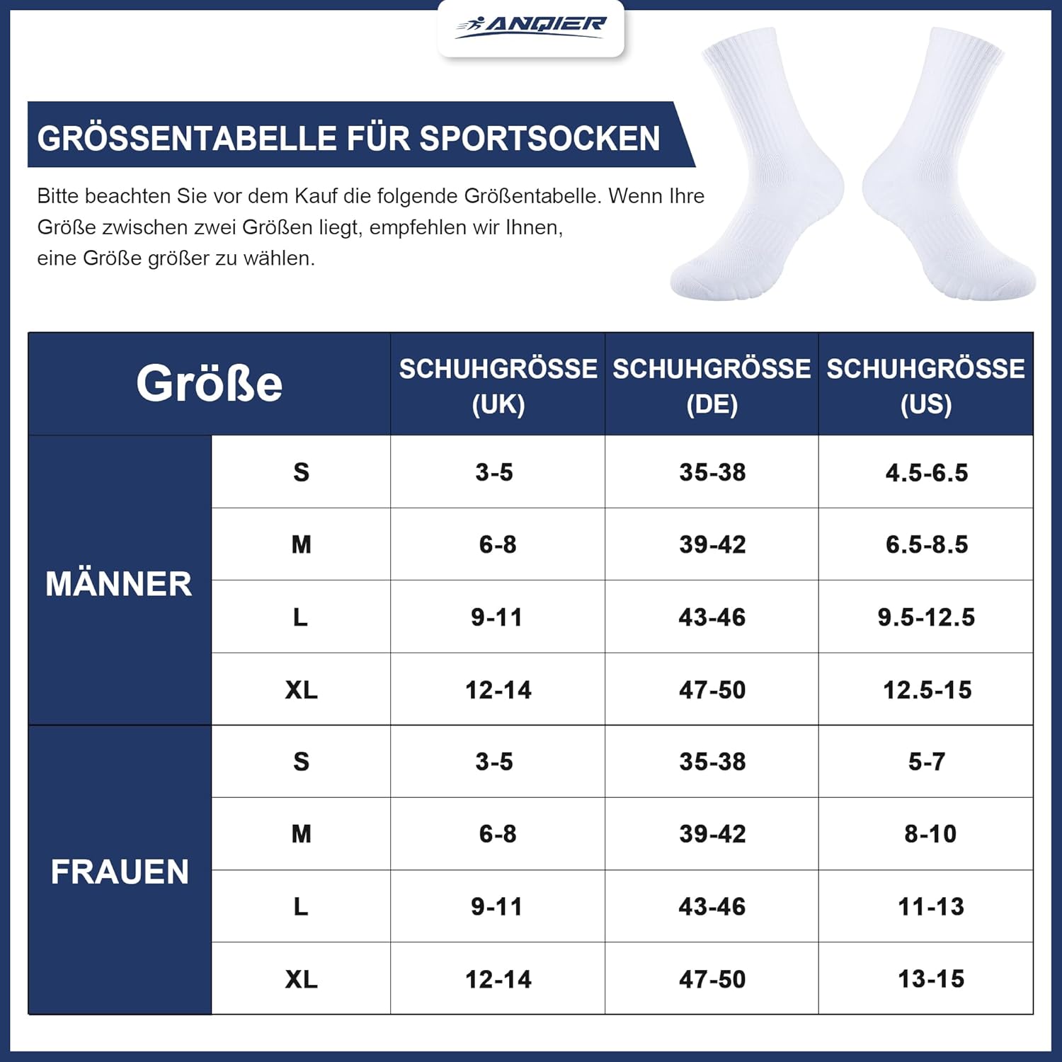 Herrensocken, Sneakersocken, Wandersocken, Sportsocken, Laufsocken, Tennissocken bei Anqier finden Sie immer das Richtige.