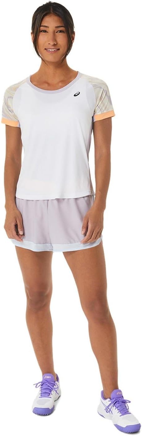Das Top T -Shirt von ASICS Women Court Graphics SS Top T -Shirt wurde sorgfältig entwickelt, um Paddle -Player ein Outfit zu bieten, das nicht nur ästhetische, sondern auch die Vorteile übertrifft. Dieses Kleidungsstück wurde mit hochwertigen Polyesterstoffen und atmungsaktiven Netzpanels hergestellt, die strategisch platziert wurden, um eine optimale Belüftung zu fördern und so den Komfort in umfangreichen Spielsitzungen zu gewährleisten. Sein regelmäßiges Schneiddesign wird sanft ermahnt in die Kontur des Körpers und bietet eine außergewöhnliche Bewegungsfreiheit, die entscheidend ist, um mit Agilität auf jeden Schlag zu reagieren.