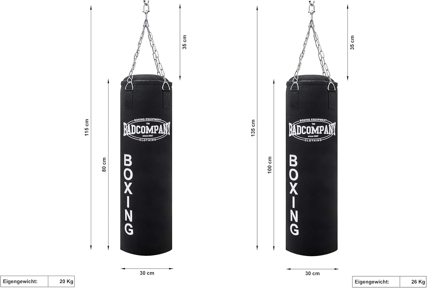 2 kg (100 cm, max. 30 kg Füllgewicht)