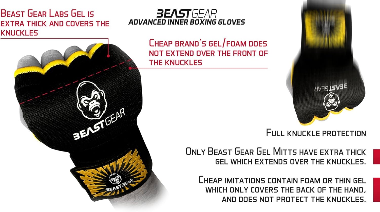 Unser Versprechen-im Gegensatz zu anderen Herstellern verwendet Beast Gear nur Materialien von höchster Qualität und hochmoderne Herstellungsprozesse. Unsere Innenhandschuhe der Gelbox halten ein Leben lang, unterstützen Ihr Kampftraining und Sie werden gleichzeitig hart aussehen!