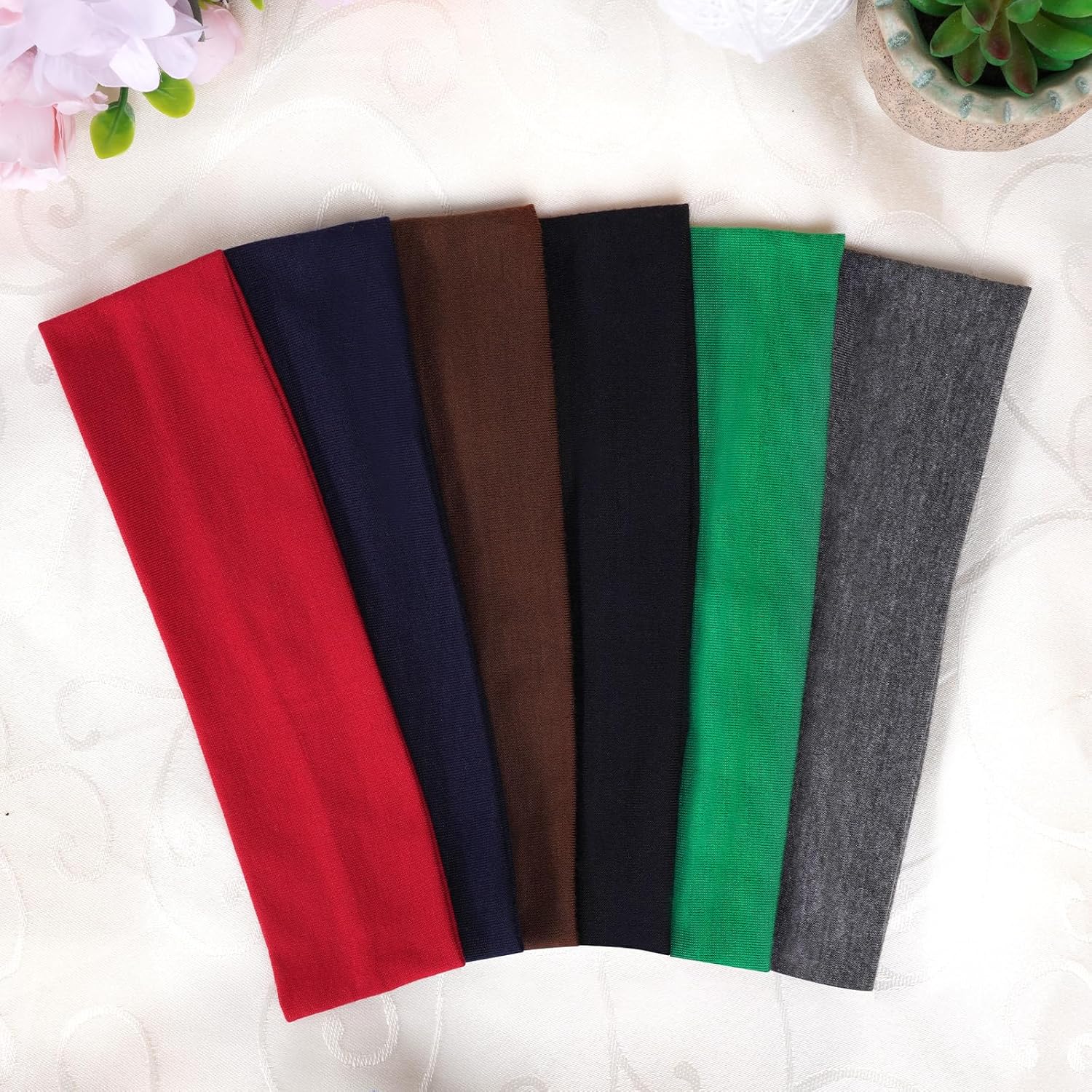 Mehrere Farben – sechs Farben für Frauenstirnbänder (Schwarz, Waldgrün, Grau, Marine, Rot und Kaffee). Egal, ob es sich um ein Outfit oder eine Fitness handelt, diese farbenfrohen Stirnbänder sind so konzipiert, dass sie Ihren Glamour ergänzen und hervorheben