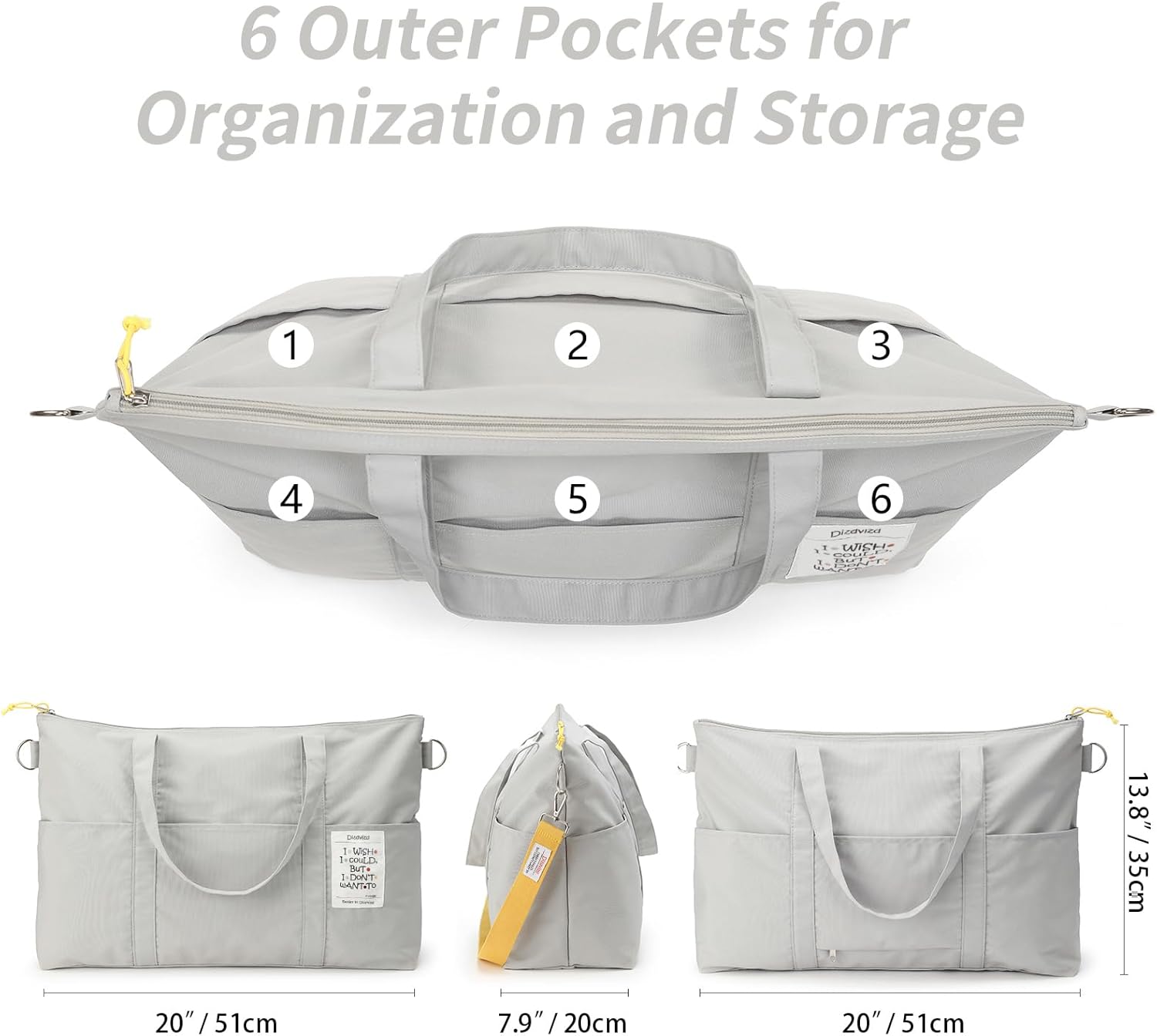 Großkapazität: 51 cm x 20 cm x 35 cm (L x W x H), 36-55 l Kapazität, die Tasche verfügt über insgesamt 8 Taschen, 1 Hauptfach, 6 äußere Taschen, 1 innere Tasche mit Reißverschluss, optimale Größe für Fitnessstudio oder kurze Reisen.