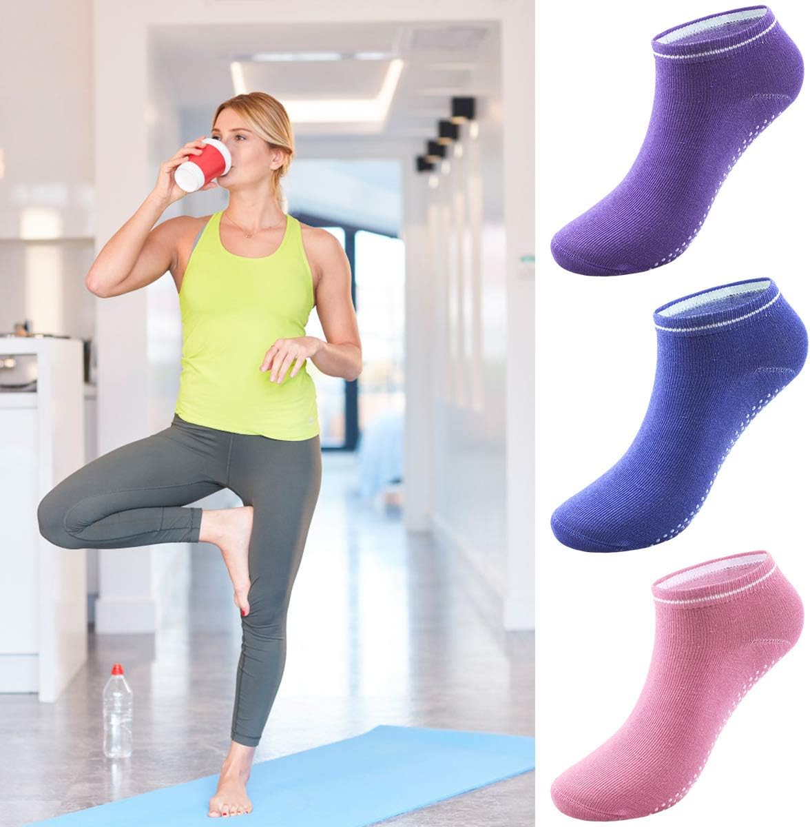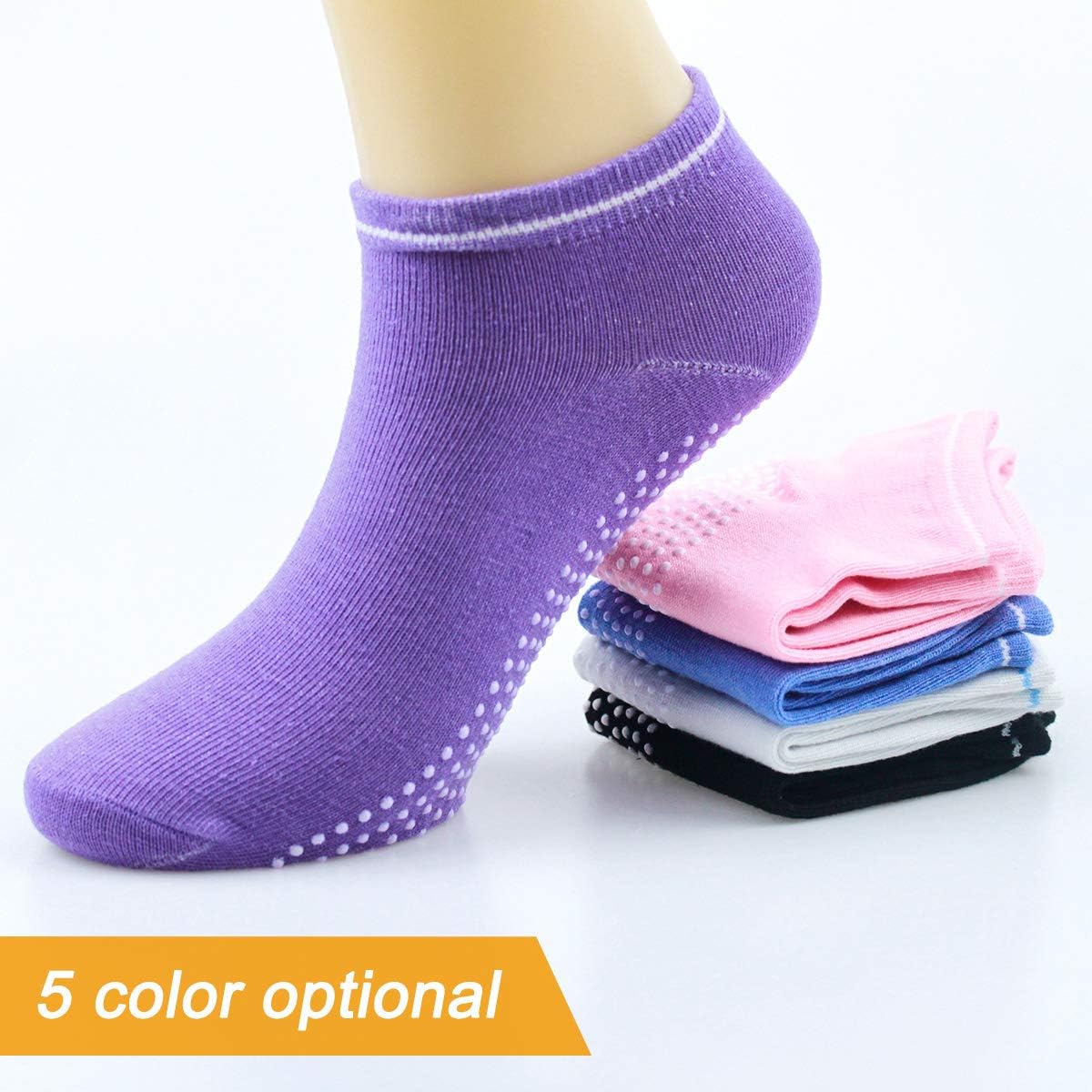 Übe Yoga, sei dein Bestes, ich! Egal, ob Sie im Barre- oder Pilates -Studio oder zu Hause arbeiten, Sie benötigen bequeme Socken, die Ihnen Stabilität verleihen. Diese Yoga -Socken sind so konzipiert, dass sie Griff und Traktion maximieren und gleichzeitig eine komfortable Passform gewährleisten. Fühlen Sie sich geerdet und stabil und erzielen Sie die gewünschten Ergebnisse in Ihrem Trainingskurs. Fühlen Sie sich entspannt und sicher, während Sie zu Hause auf den Hartholzböden herumlaufen, Yoga machen oder einfach auf der Couch rumhängen. Einfach einzuziehen, einfach los. Wir machen Socken zum Kinderspiel – verwenden Sie die gepolsterten Registerkarten um die Manschette, um die Socken schnell anzuziehen und abzunehmen. Spezifikationen: Material: Baumwolle. Typ: eine Größe. Farbe: Schwarz / grau / lila / pulver / blau. Das Paket enthält: 5 Paar Yoga -Socken