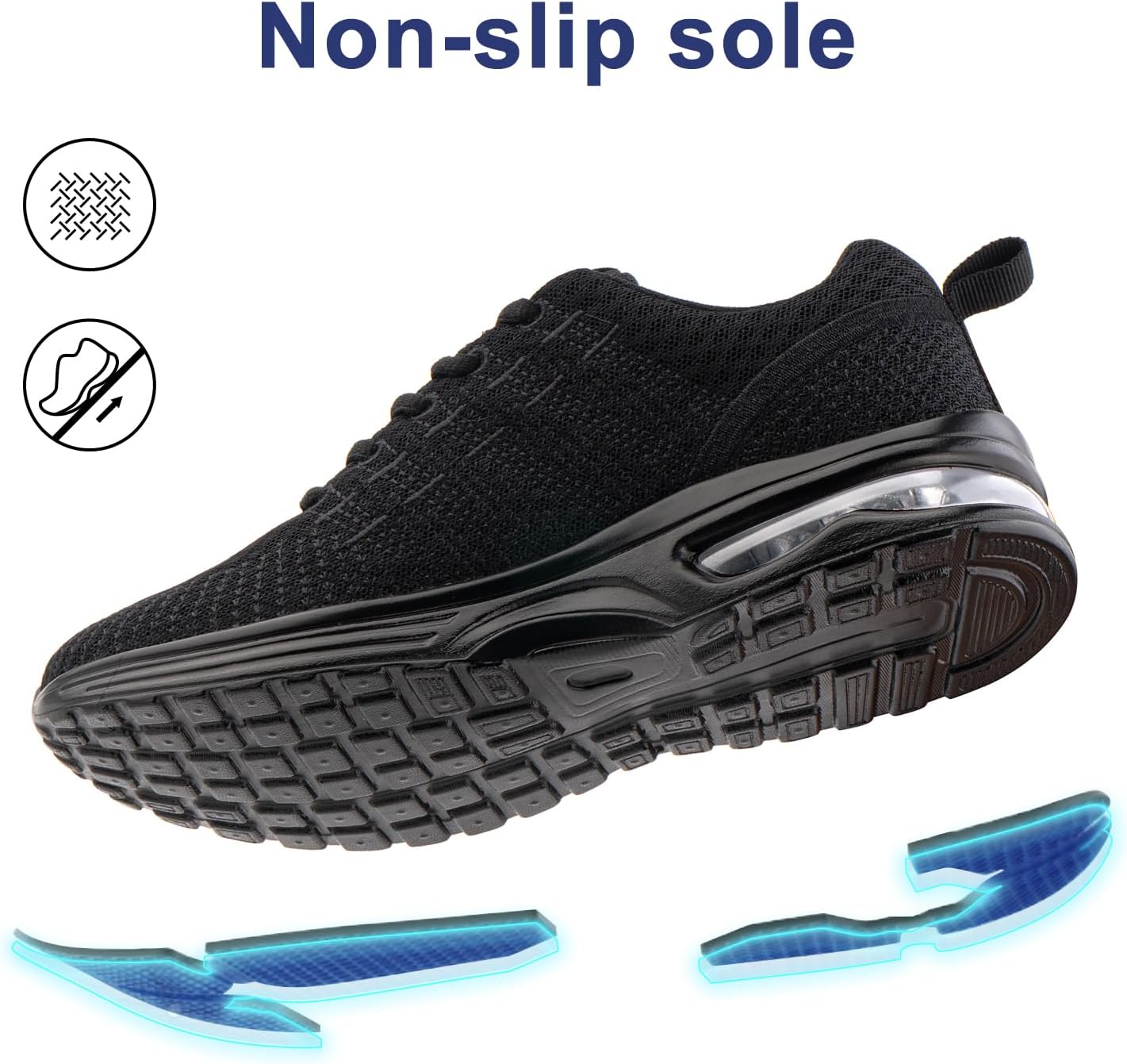 Hitmars Laufschuhe Damen Turnschuhe Luftpolster Sneaker Air Sportschuhe Atmungsaktiv Joggingschuhe Straßenlaufschuhe rutschfest Joggingschuhe Walkingschuhe Fitness Running Outdoor Schwarz EU 36-42