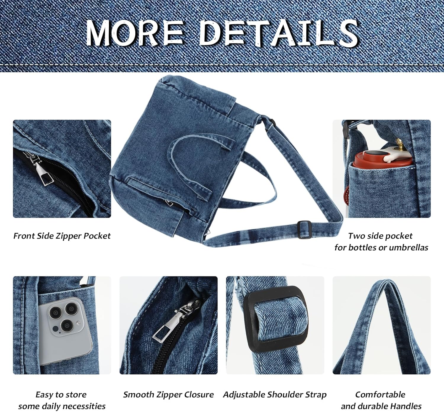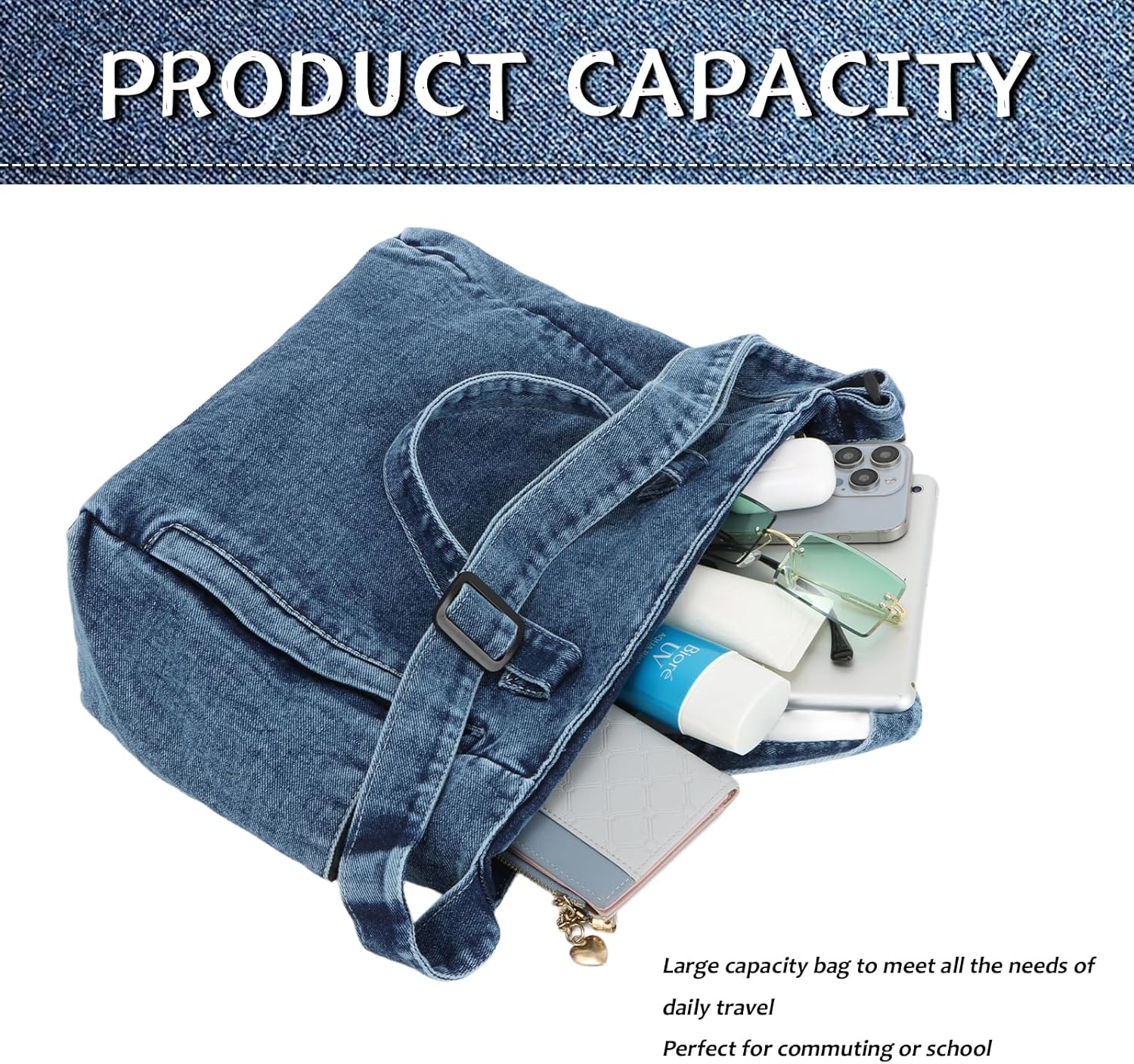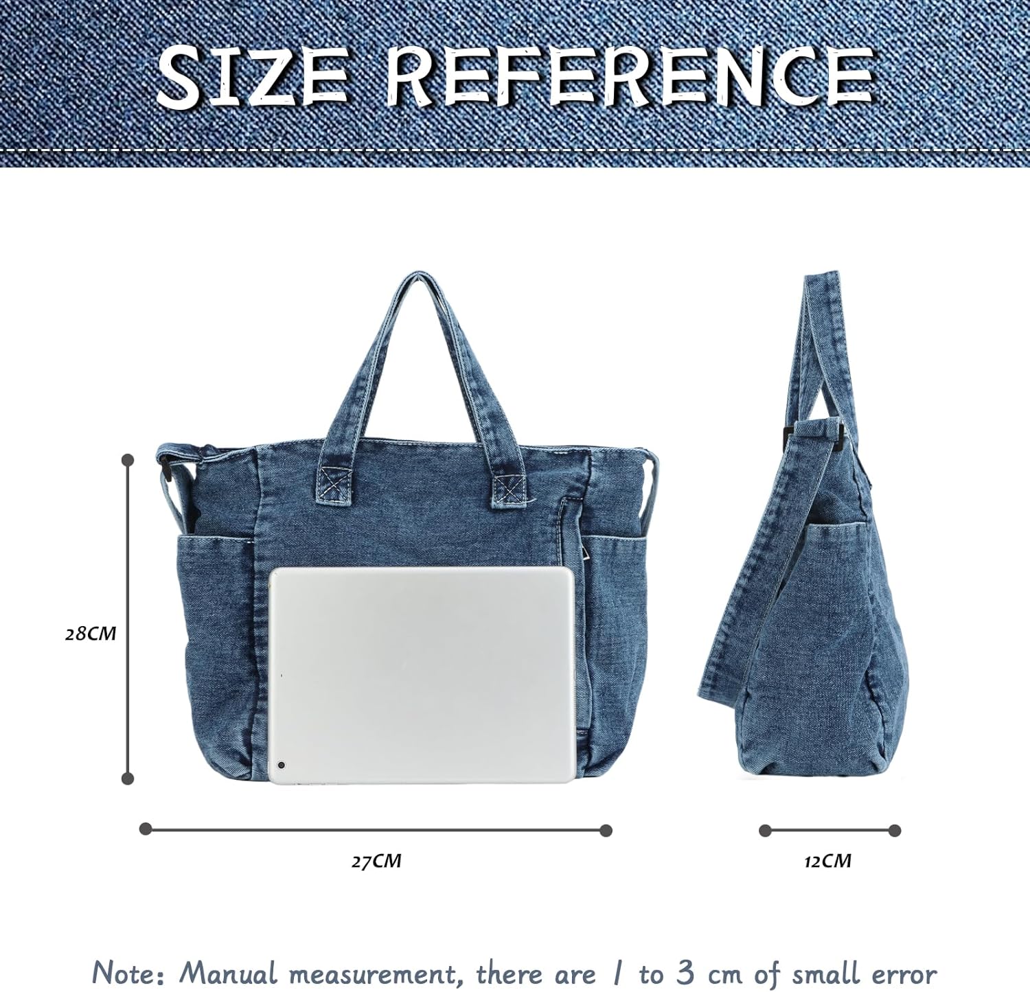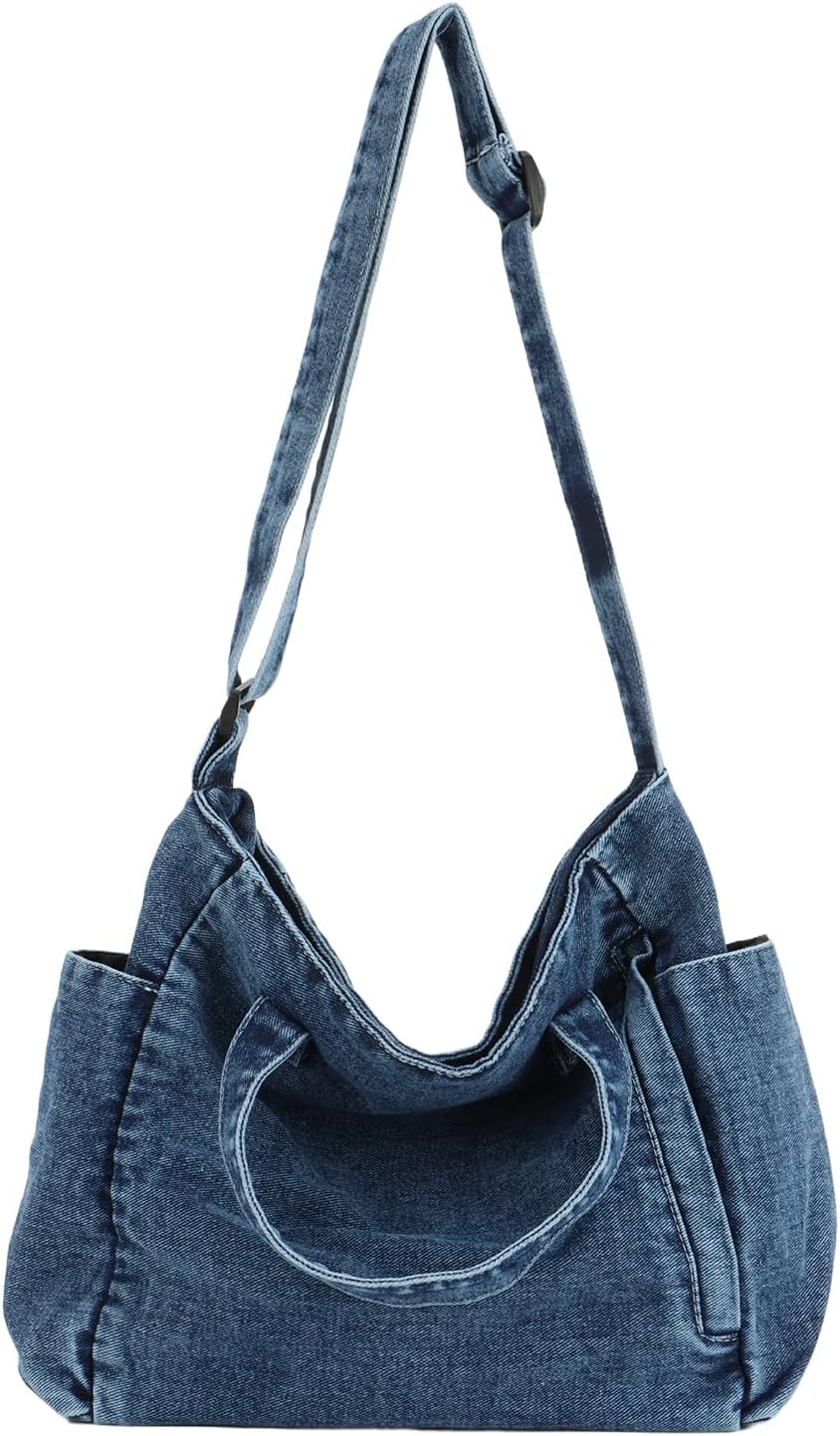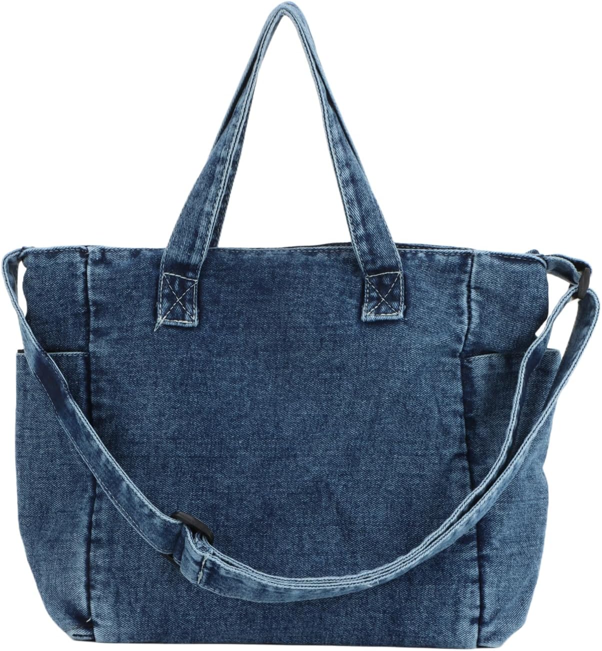 Jywmsc Denim -Einkaufstasche für Frauen Leinwand Tasche mit Reißverschluss großer Kapazität Casual Umhängetasche Denim -Geldbörsen
