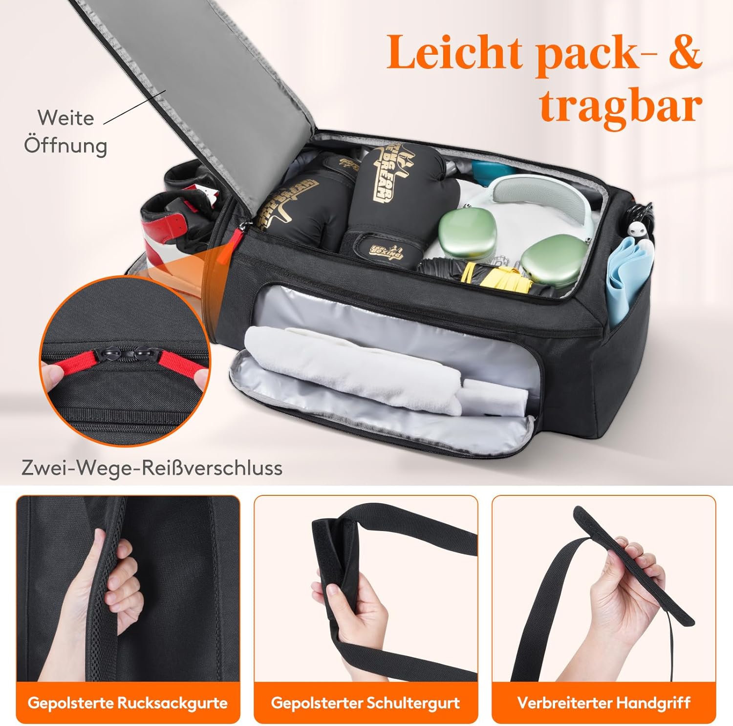 Vielseitigkeit trifft Stil: In der 3-in-1-Sporttasche findet alles Platz