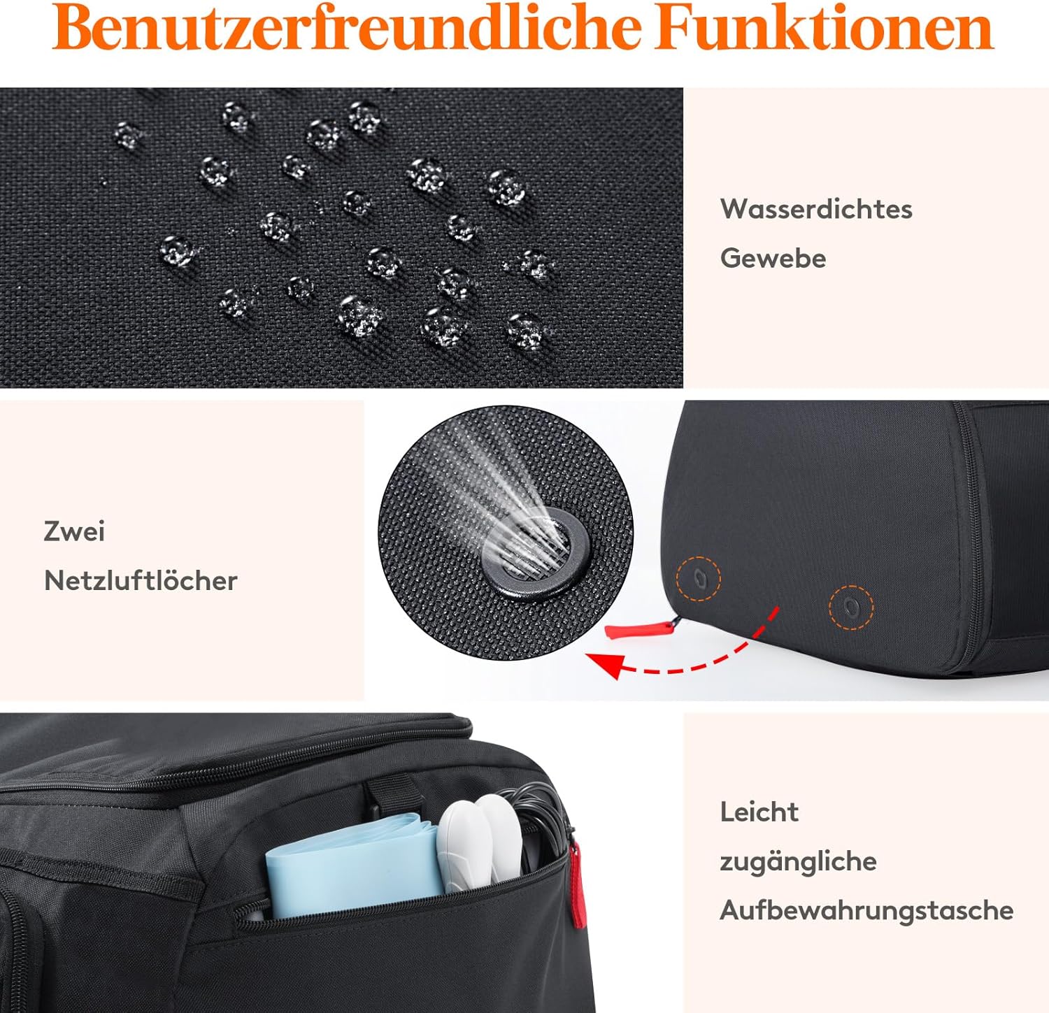 Benutzerfreundliche Funktionen: Die Gegenstände aus wasserdichtem Stoff bleiben im Reisetasche trotz Regen oder Schnee trocken. Der Reisetasche hat 2 Mesh -Belüftungslöcher, die Schmutz fernhalten.