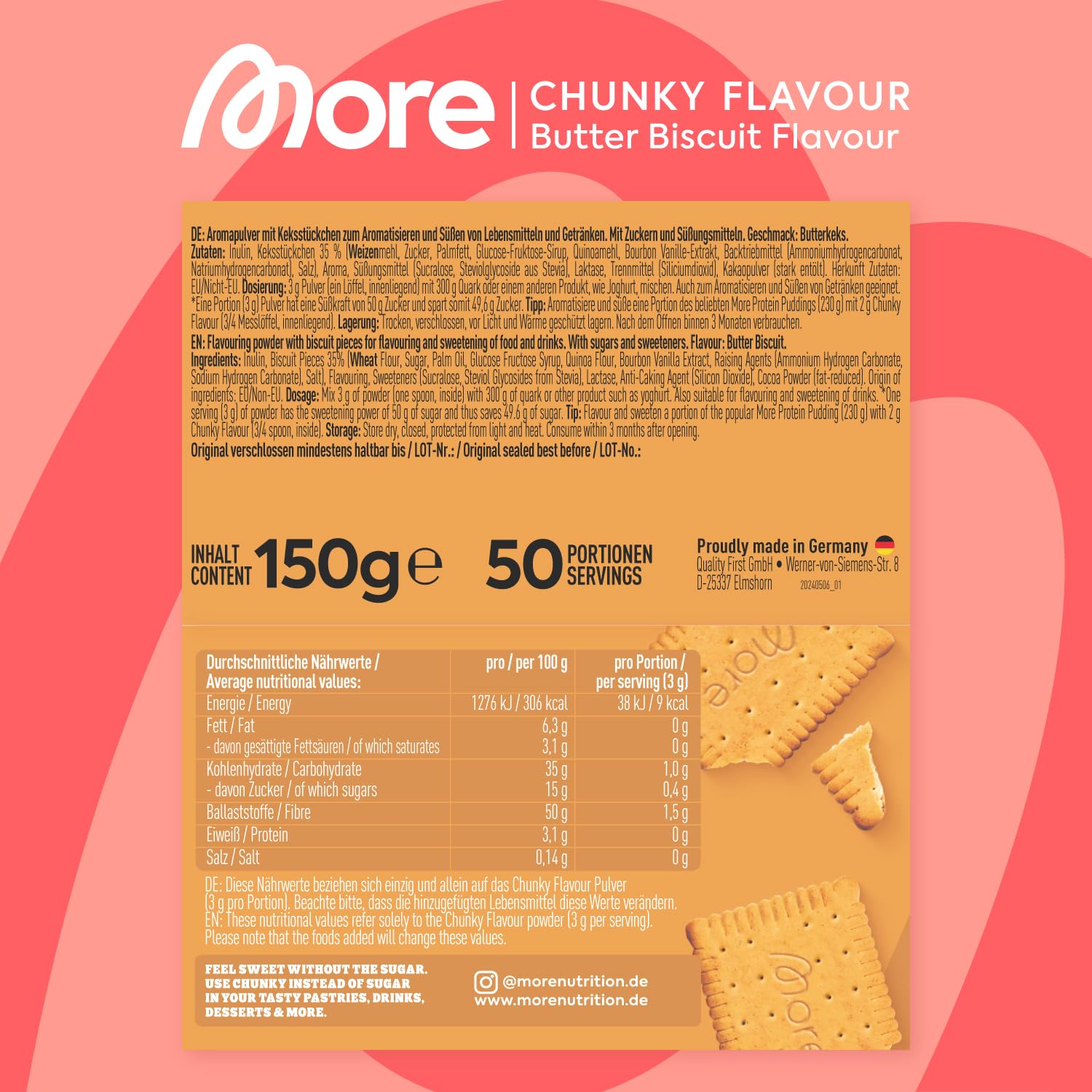 Vielseitig: Egal, ob Quark, Joghurt, Brei, Eiweißschütteln, Pfannkuchen, Dessert oder Kaffee – der klobige Geschmack verleiht jedem Gericht und Getränk den vollen Geschmack und Abwechslung