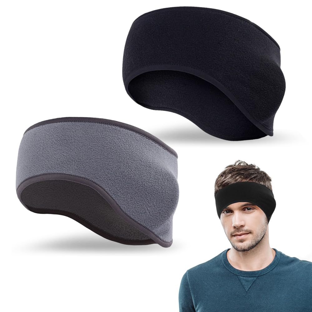 Mizikuu -Packung mit 2 Wintersportstirnbändern, Ohrhörer -Stirnbänder für Männer und Frauen, kaltes Schutz, warm, winddicht, elastische Ohrschützer, Stirnband zum Laufen, Joggen, Radfahren, Wandern