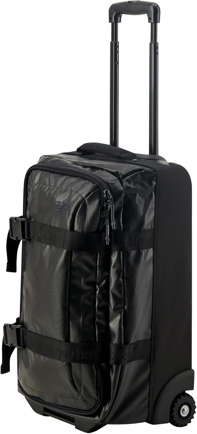 New Balance Travel Gepäck Dieses coole und stilvolle weiche Gepäck bietet ein modernes schwarzes Design mit reflektierenden gewebten Logos, das Stil mit Funktionen für Reisende kombiniert, mit doppelten Reißverschlüssen, um Ihre Wertsachen sicher und sicher im Inneren zu halten. Dieses Softshell -Gepäckgestell erfüllt die meisten Anforderungen an die Fluggesellschaft für Gepäck und passt die meisten Mülldosen