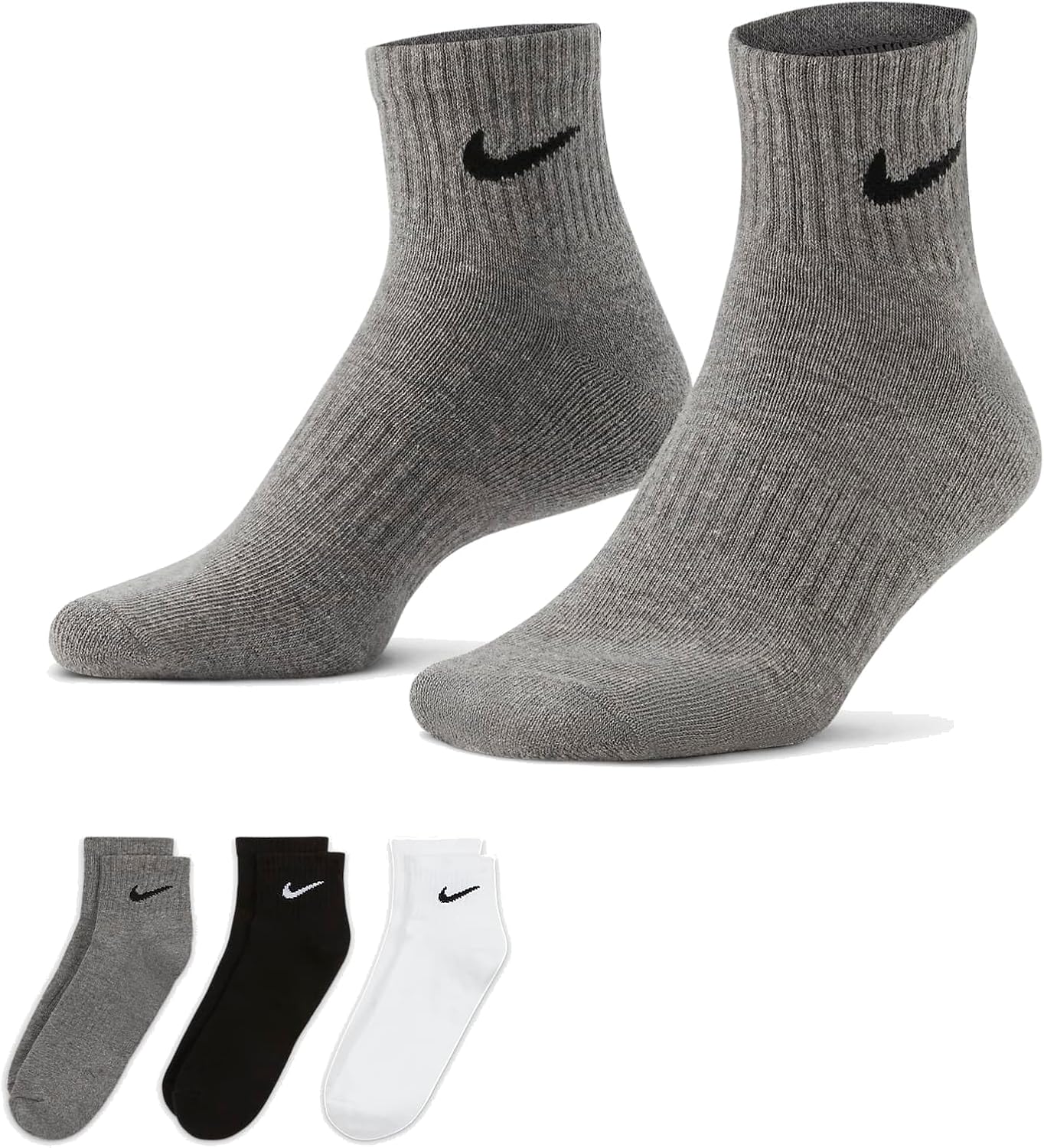 Mit den Nike Everyday gepolsterten Socken können Sie Ihr Training erstellen. Die dicke Terry -Sohle sorgt für zusätzlichen Komfort bei Fußübungen und Gewichtheber. Das Rippenbogenband wickelt sich um ein unterstützendes Gefühl um den Mittelfuß.