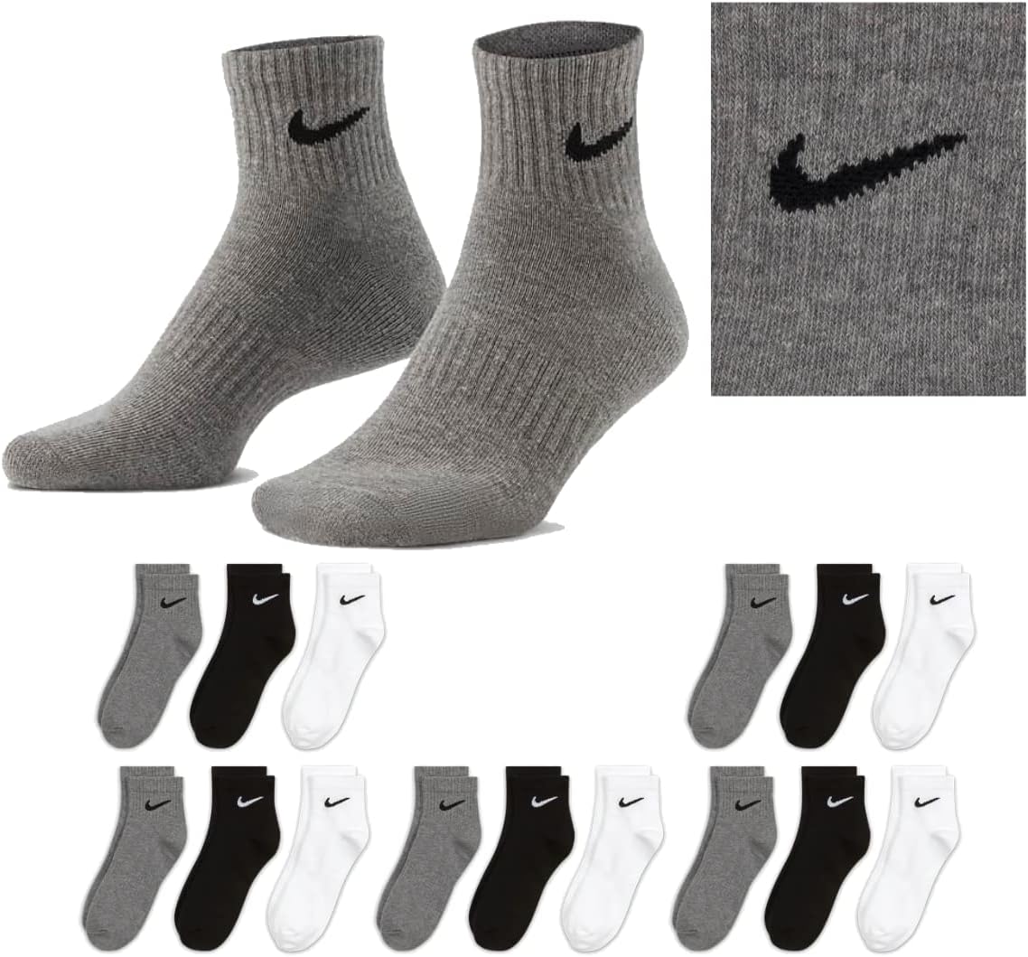 Die Nike Everyday Lightweight SX7677 Socken sind ideal für Ihr Training. Sie sind mit der Dri-Fit-Technologie ausgestattet, die den trockenen Komfort an den Füßen sorgt, indem sie Schweiß wegwerfen. Die Socken haben gerippte Manschetten, die sicherstellen, dass sie nicht rollen, und ein Erzband, das ein unterstützendes Gefühl vermittelt. Das Material der Socken besteht aus weichen Garnen und besteht in der einfachen Version aus 61% Baumwolle, 36% Polyester und 3% Elastan. Die Heather -Version besteht aus 58% Baumwolle, 40% Polyester und 2% Elastan. Die Socken können leicht maschinengewaschen werden und haben den Stilcode SX7677-964. Mit diesen Socken erhalten Sie einen Schweißkomfort und sind für Ihr nächstes Training gut ausgestattet. Schweißmaterial, Dri-Fit-Technologie. Pflegeanweisungen: Maschinenwäsche. Modellnummer: SX7677. Non-Slip, Knöchel hoch, für jeden Tag. Material: einfache Farbe: 61% Baumwolle, 36% Polyester, 3% Elastan. Heather: 58% Baumwolle, 40% Polyester, 2% Elastane. Maschinell-waschbar. Stil: SX7677. Nike ist eine der wichtigsten Lifestyle -Marken. Es hat das Popkultur -Styling inspiriert und den Begriff „cool“ neu definiert. Es ist kaum zu glauben, dass diese Marke im Kofferraum eines Autos gegründet wurde. Dieses Auto gehörte jedoch niemandem als Phil Knight, dem Visionär hinter dem Etikett mit dem ‚Swoosh‘, der zusammen mit Bill Bowerman nach dem perfekten Laufschuh suchte, der Leichtigkeit und Haltbarkeit verbinden würde. Aus dieser Vision sind zahlreiche Trainerklassiker entstanden, deren Originale von Sammlern begehrt werden.