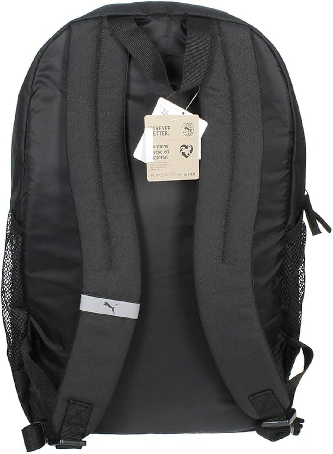 Zwei-Wege-Reißverschluss in das Hauptfach, zusätzliche Front-Reißverschluss-Tasche und Maschen-Seitentaschen. Elastischer, gepolsterter Laptop -Fach und zwei zusätzliche Schlupftaschen im Inneren. Aus 150d Polyester mit PU -Verstärkung. Verstellbare, abgerundete Schultergurte mit reflektierendem Puma -Katzen -Logo. Kleine obere Griffe gepolsterte Rückseite Puma Gebandete Reißverschluss aus Metall. Reflektierendes Durabase -Logo -Klebeband und großes Puma -Katzen -Logo auf der vorderen, gewebten Puma -Beschriftung an der Seite.