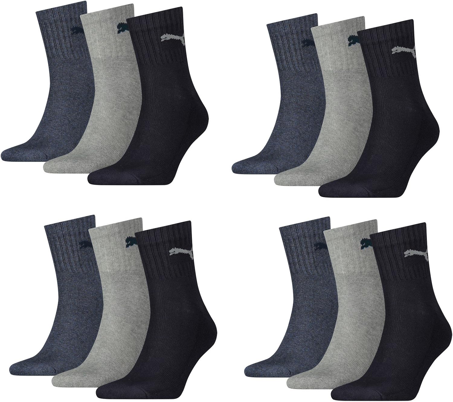 12 Paar Puma -Sportsocken mit Puma -Logo auf der Seite.