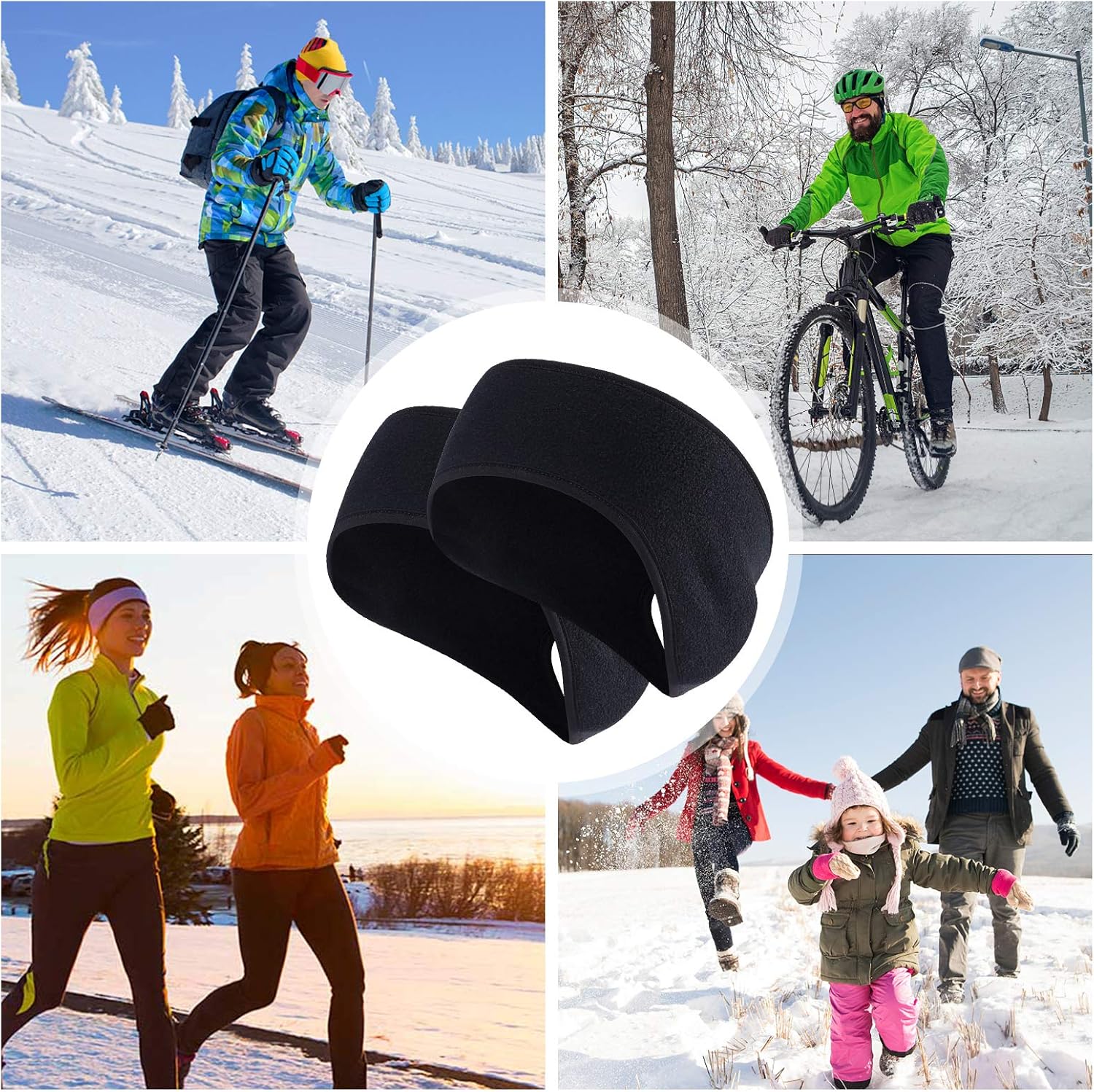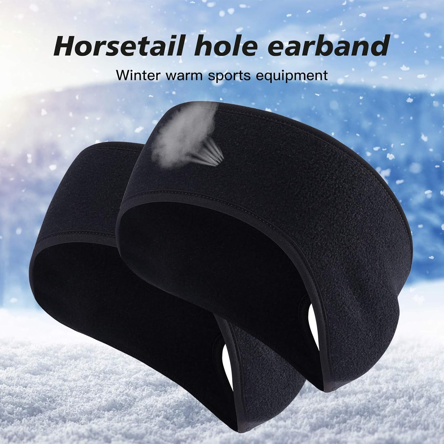 Qkurt 2 x Winter Fleece Sportstirnband, Pferdeschwanzstirnbänder, Schweißband, Stirnband für Frauen