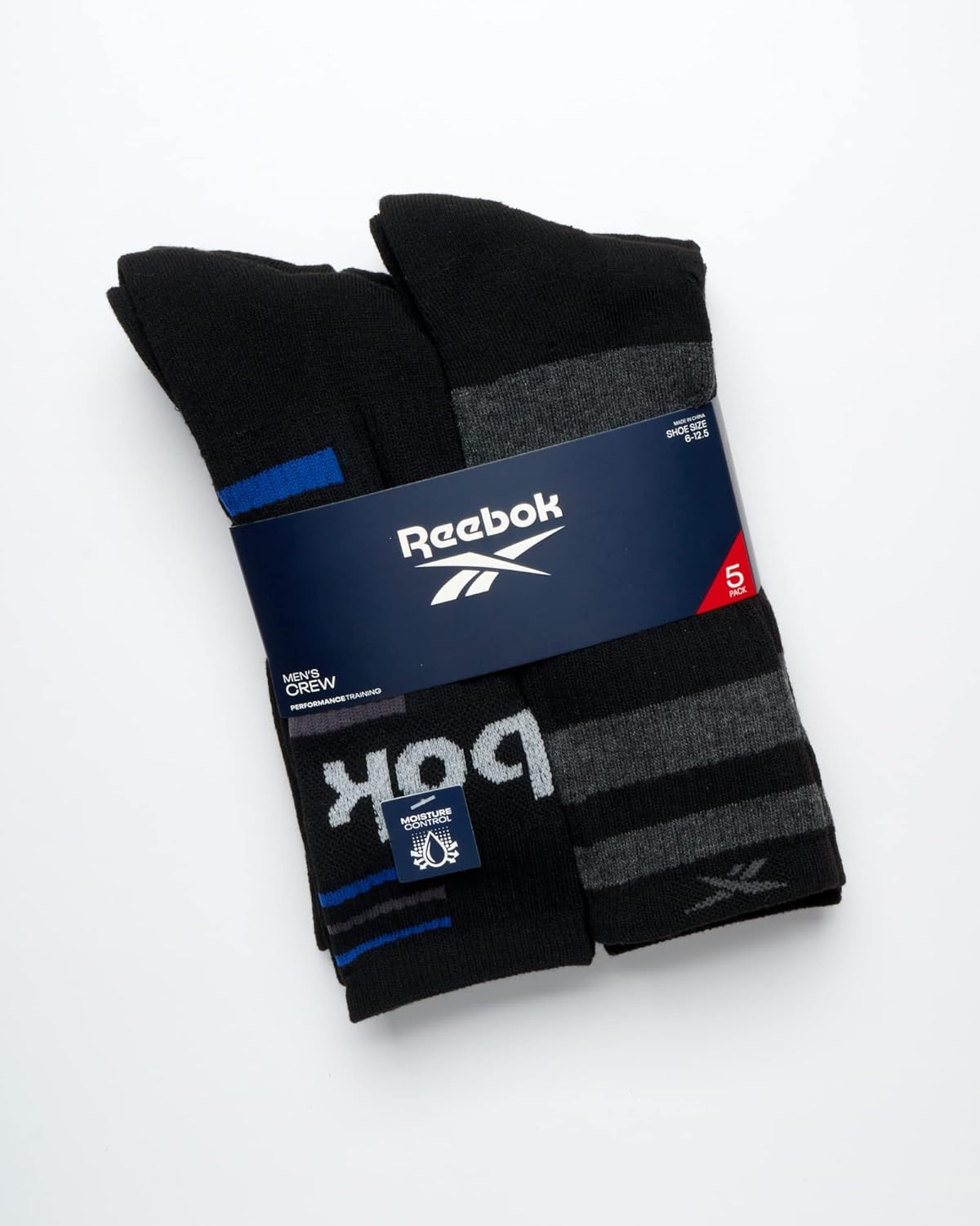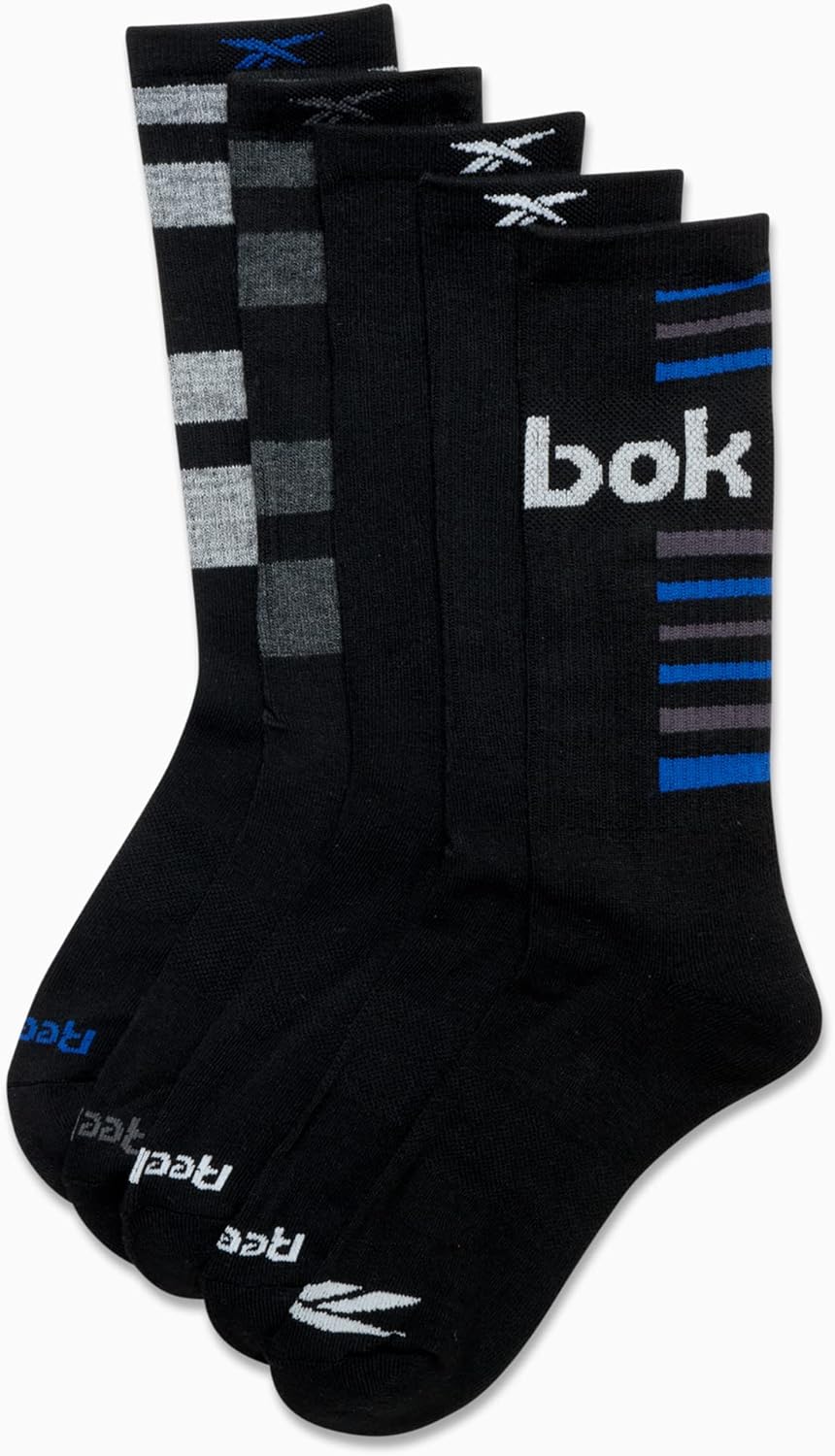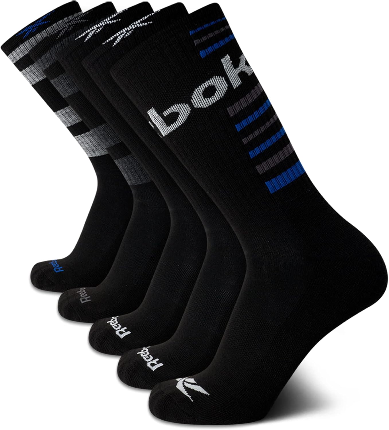 Reebok Herren Sports Socken Komfortkissen Performance Crew Socken (Pack von 5), Schwarz/Grau Multi