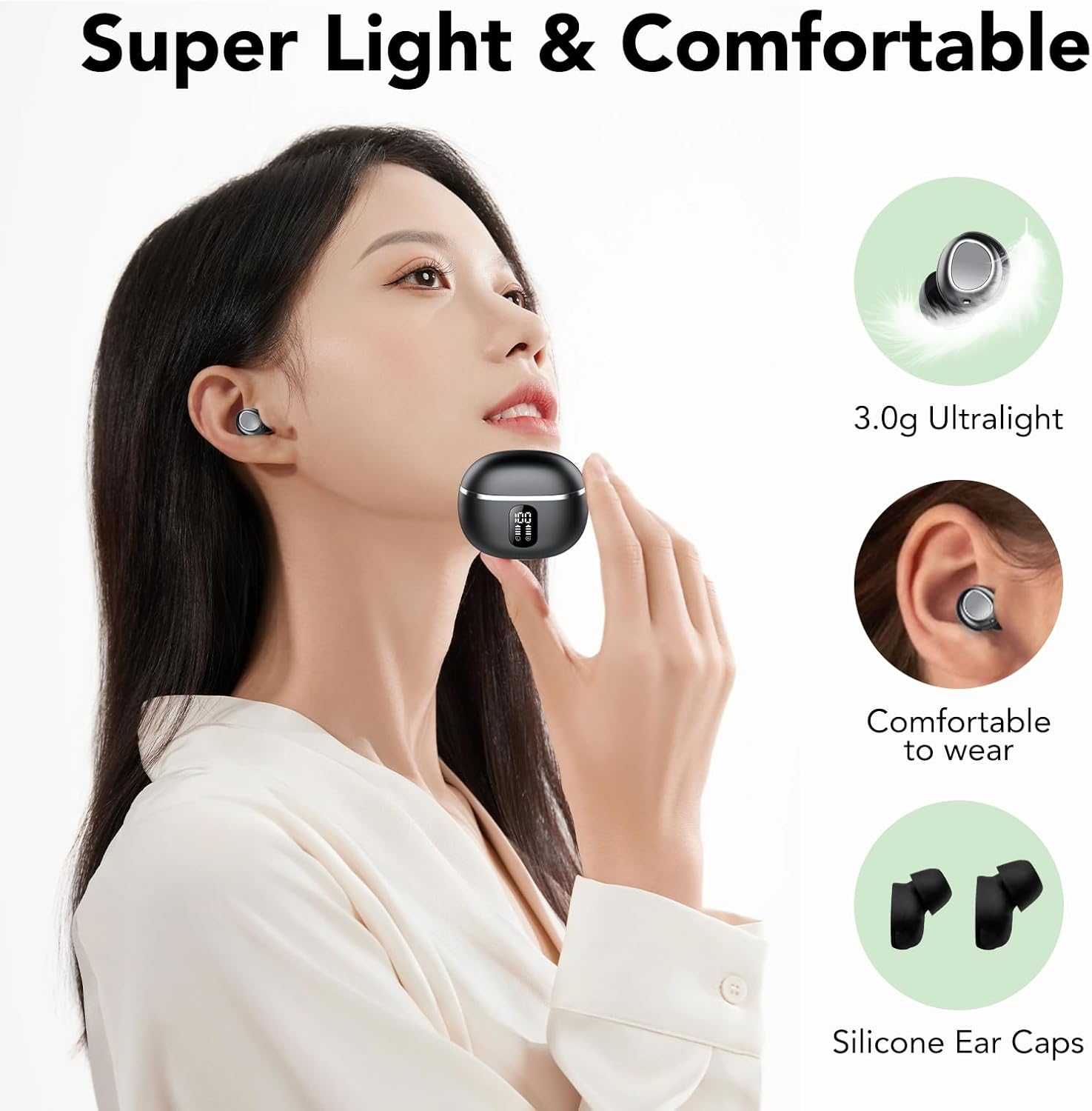 50 Stunden Spielzeit und LED -Leistungsanzeige: Die Ohrhörer mit drahtloser Lärmstündung haben eine Akkulaufzeit von 7 Stunden und eine inklusive Ladegefälle, mit der Kopfhörer eine Gesamtspielzeit von 50 Stunden schlafen können. Der 400-mAh-Akku ermöglicht das ganztägige Hören. Die Schlaf -Ohrhörer sind mit einem Doppel -LED -Indikator ausgestattet, der die Ladegrenze des Ladegeräts und die Mini -Bluetooth -Kopfhörer genau zeigt.