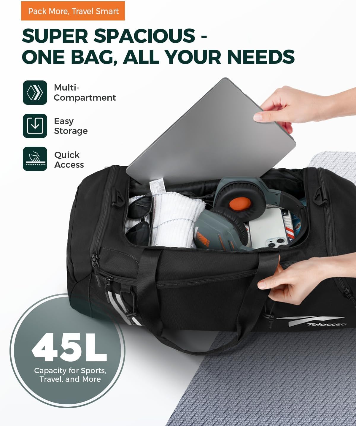 Mehrzweck-Handpack-Tasche: Diese Tolaccaa-Tasche kombiniert Funktionen, Komfort und ein sportliches Design, das sowohl für Männer als auch für Frauen geeignet ist. Kann täglich als Reisetasche, Fußballbeutel, Sauna -Taschen und Schwimmbeutel verwendet werden. Perfekt für alle, die nach Flexibilität und Komfort suchen.