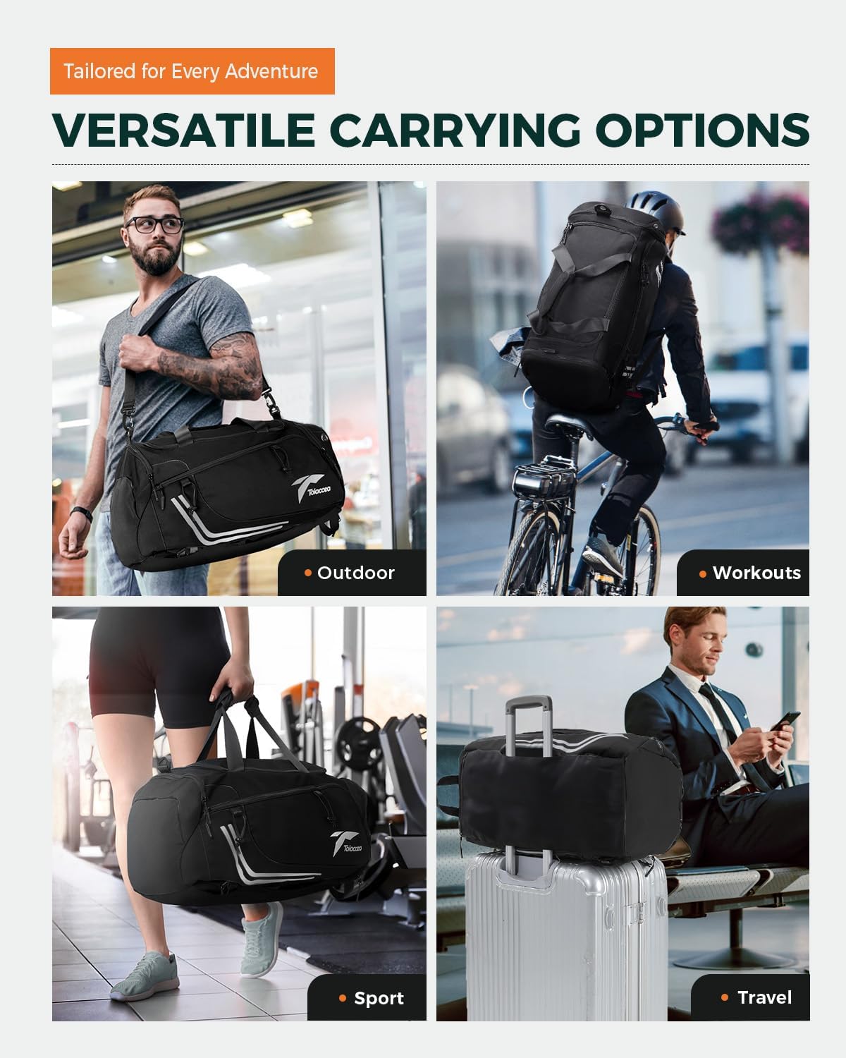 3-in-1-Design-Sporttasche: Tolaccaa Herren Sports Bag bietet drei Tragetaschen an: Umhängetasche, Handtasche und Rucksack. Auf der Rückseite des Trainingsbags befinden sich versteckte Schultergurte und gepolsterte und verstellbare Doppel -Schultergurte, die sie beim Fahren und Gehen bequemer und stabiler machen. Der komfortable Griff und die verstellbaren unabhängigen Schultergurte machen das Gepäck auch täglich, um die Reise- und Geschäftsreise bequem zu machen.