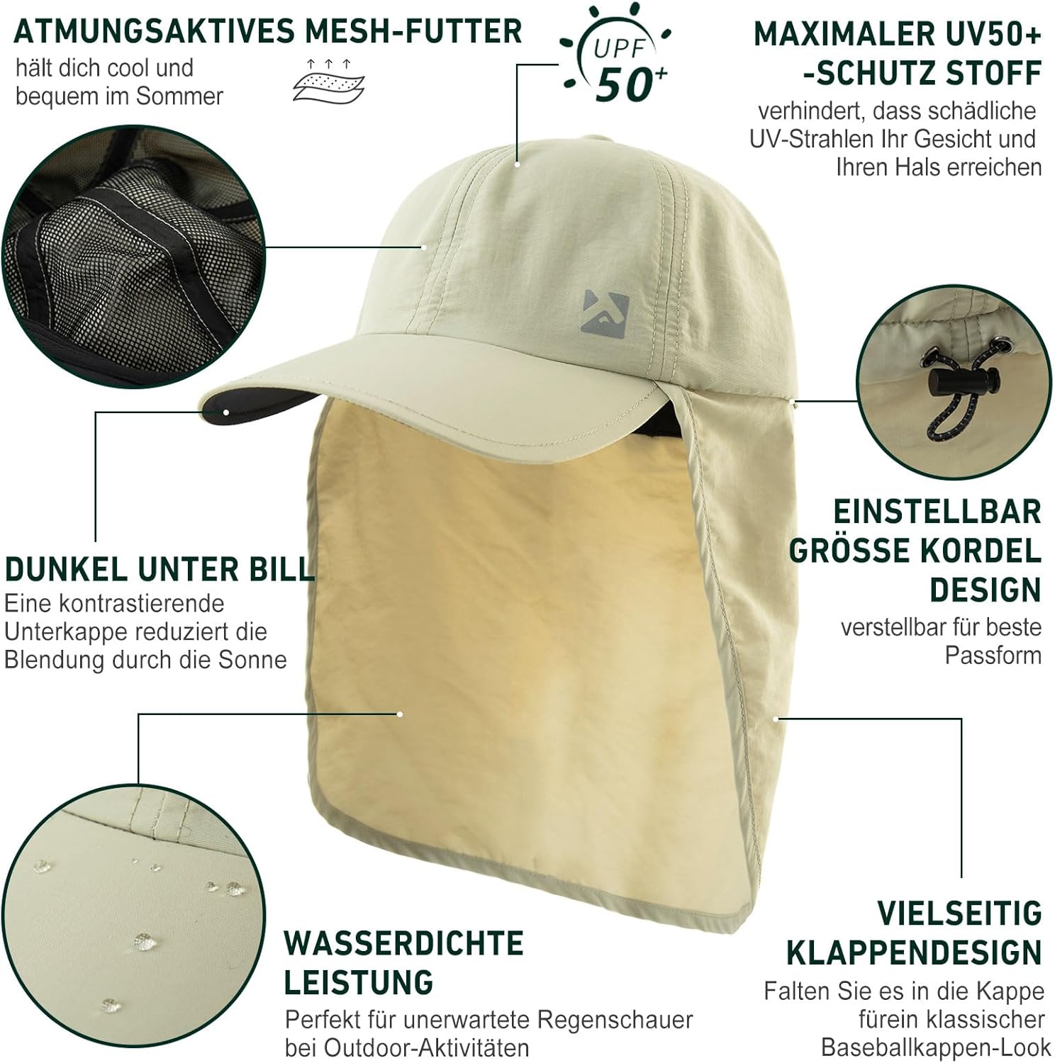 Top-ex XL/XXL wasserdichte Baseball-Kappe Männer mit Nackenklappe UV-Schutz Sonnenhle