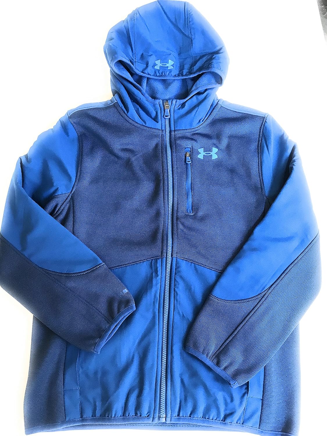 Die UA -Sturmtechnologie ist wasserbeständig, ohne die Atmungsaktivität zu beeinträchtigen. Ua Coldgear fühlt sich warm, trocken und leicht an. Gebürstetes Fleece -Jumper mit Endstreifen. Bindung an Motorhaube, Manschetten und Saum. Handwärmer Taschen mit sicherem Pressebergenverschluss. Heizungslogo auf Brust und Kapuze.