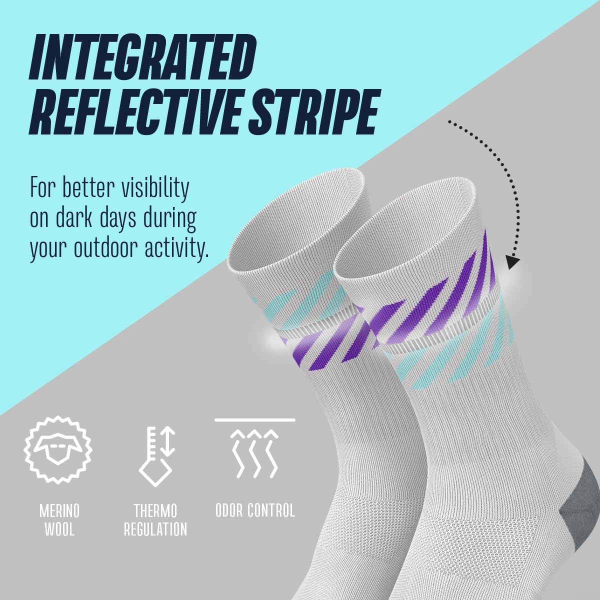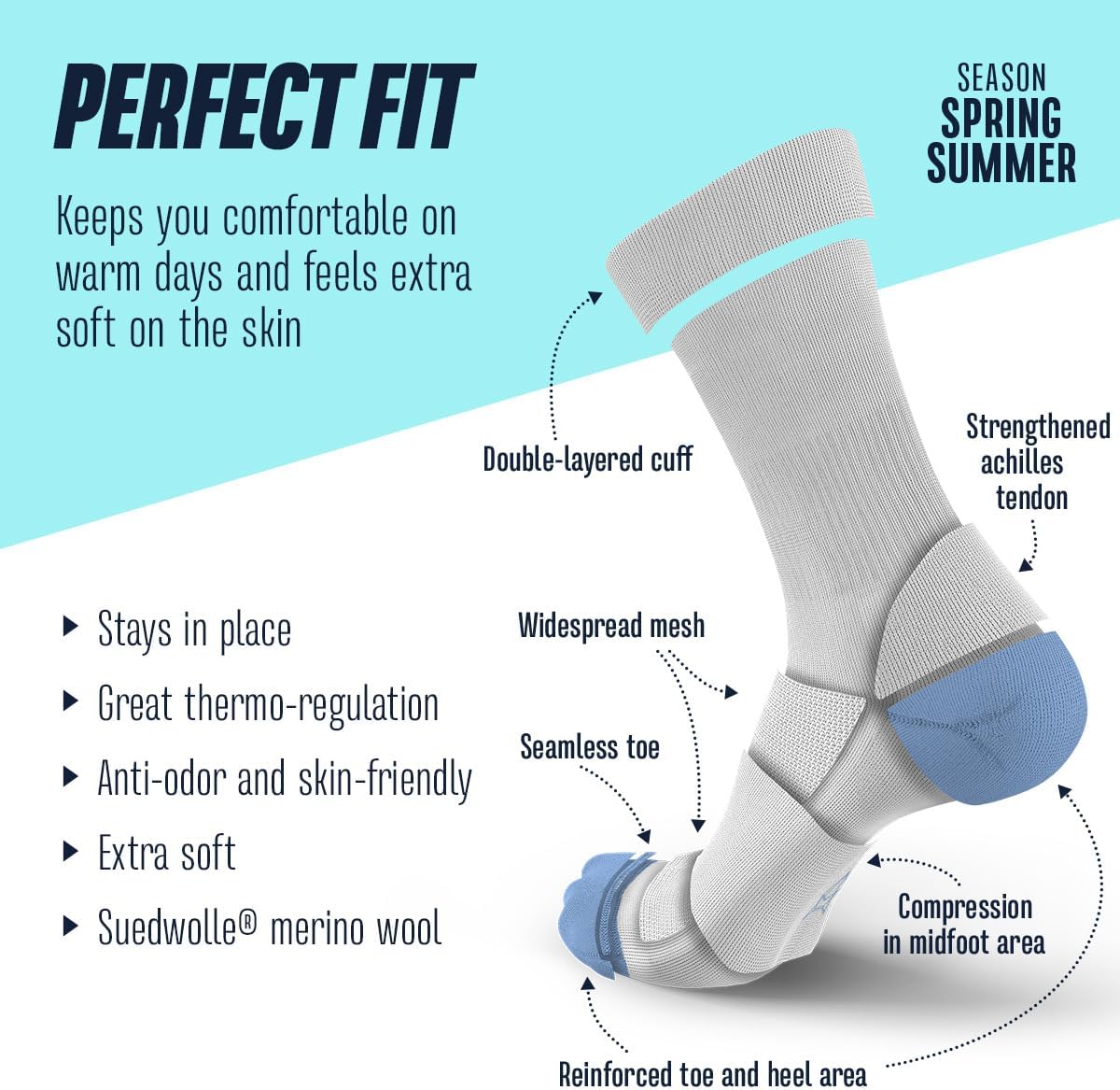 Unbekämpfungspuren dünne Merinosocken lange, atmungsaktive Sportsocken mit Anti-Blister-Schutz, 40% Wärme isolierende Merinowolle, Herbst- und Frühlingssocken, Wander- und Fahrradocken