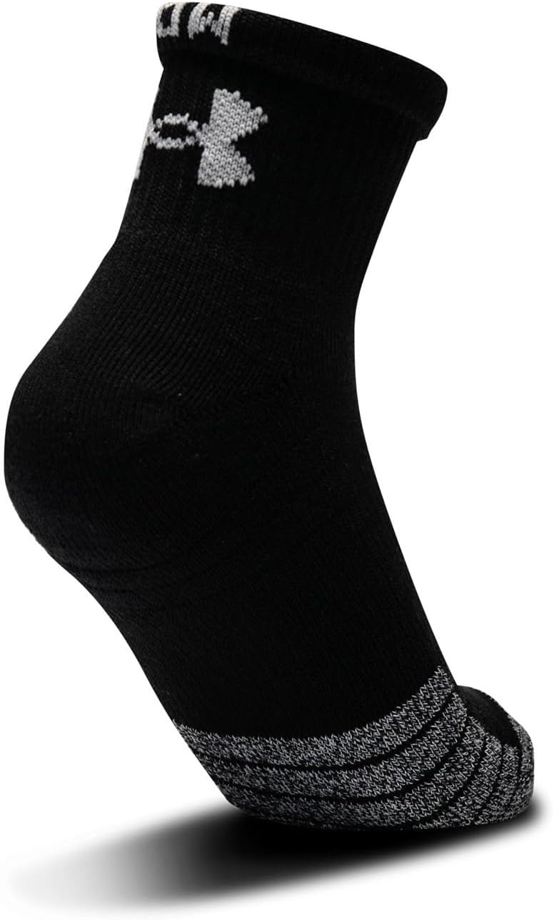 Under Armour UA Heatgear Quarter 3Pk – Für diskrete und funktionale Komfort. Für verschwitzte Aktivitäten sind die Under Armour UA Heatgear Viertel 3pk Unisex Sports Socken der richtige Begleiter. Sie wurden aus Heategear -Stoff hergestellt und schwitzen sicher für ein trockenes, kühles und leichtes Gefühl. Die Anti-Odour-Technologie verhindert die Bildung von vorläufig verständigen Mikroben und Mesh-Einsätzen, die die laufenden Socken zusätzlich atmungsaktiv machen. Der dynamische Bogenunterstützung wirkt auch der Fußmüdigkeit für mehr Komfort entgegen. Mit ihrer strategischen Dämpfung reduzieren die Kompressionssocken die Masse und bieten Flexibilität und Atmungsaktivität. Under Armour Macht Athlet Besser. Wir begannen mit einem T-Shirt, das den Athleten einen unbestreitbaren Vorteil verschafft und letztendlich eine vollständige Erneuerung der Sportbekleidung erzielte. Heute ist Innovation unser Elixier des Lebens und der Schlüssel zum Erreichen unserer Markenmission. Produktvorteile im Detail: Hergestellt aus Heategar-Stoff, Anti-Odour-Technologie, dynamischer Bogenunterstützung. Materialien: 97% Polyester, 3% Elastane