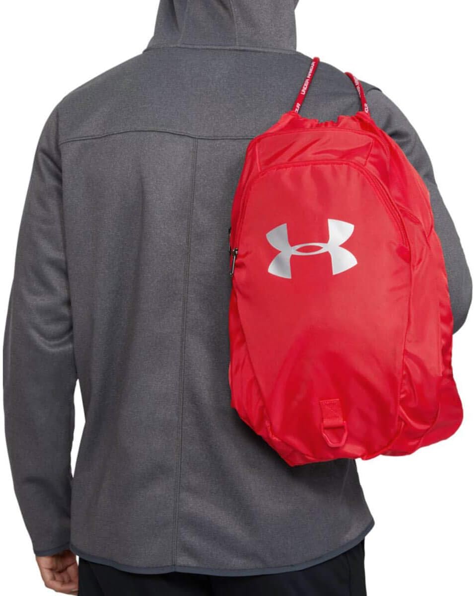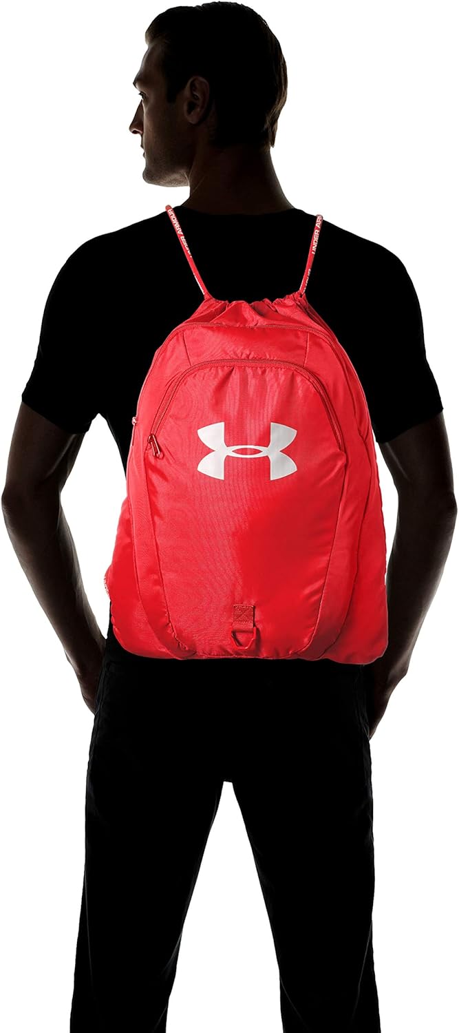 Dieser Rucksack ist nicht nur für den Transport von Sportgeräten geeignet, sondern kann auch im Alltag verwendet werden. Die 2 Vordertaschen bieten zusätzlichen Speicherplatz und die Wertsachen können sicher kleinere Gegenstände speichern. Die Sportsack verfügt über einen einzigen, leicht verstellbaren Kordelzug mit Wordmark sowie einen verstellbaren Under Armour Chest -Clip. Der vordere D-Ring kann flexibel am Rucksack angebracht werden. Mit den Abmessungen von 48 cm x 38 cm x 5 cm ist der Rucksack kompakt und bietet 25 Liter Kapazität. Es besteht aus 100% Polyester.