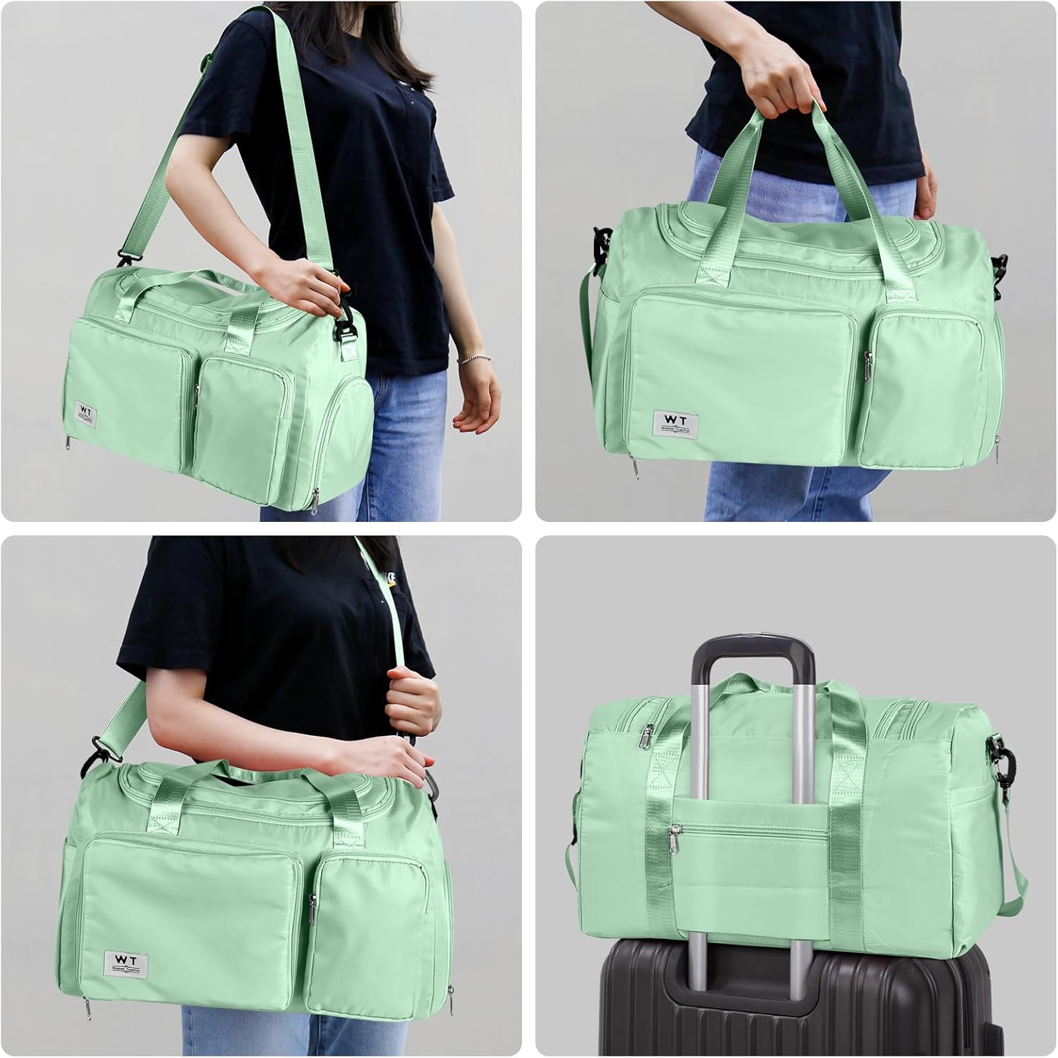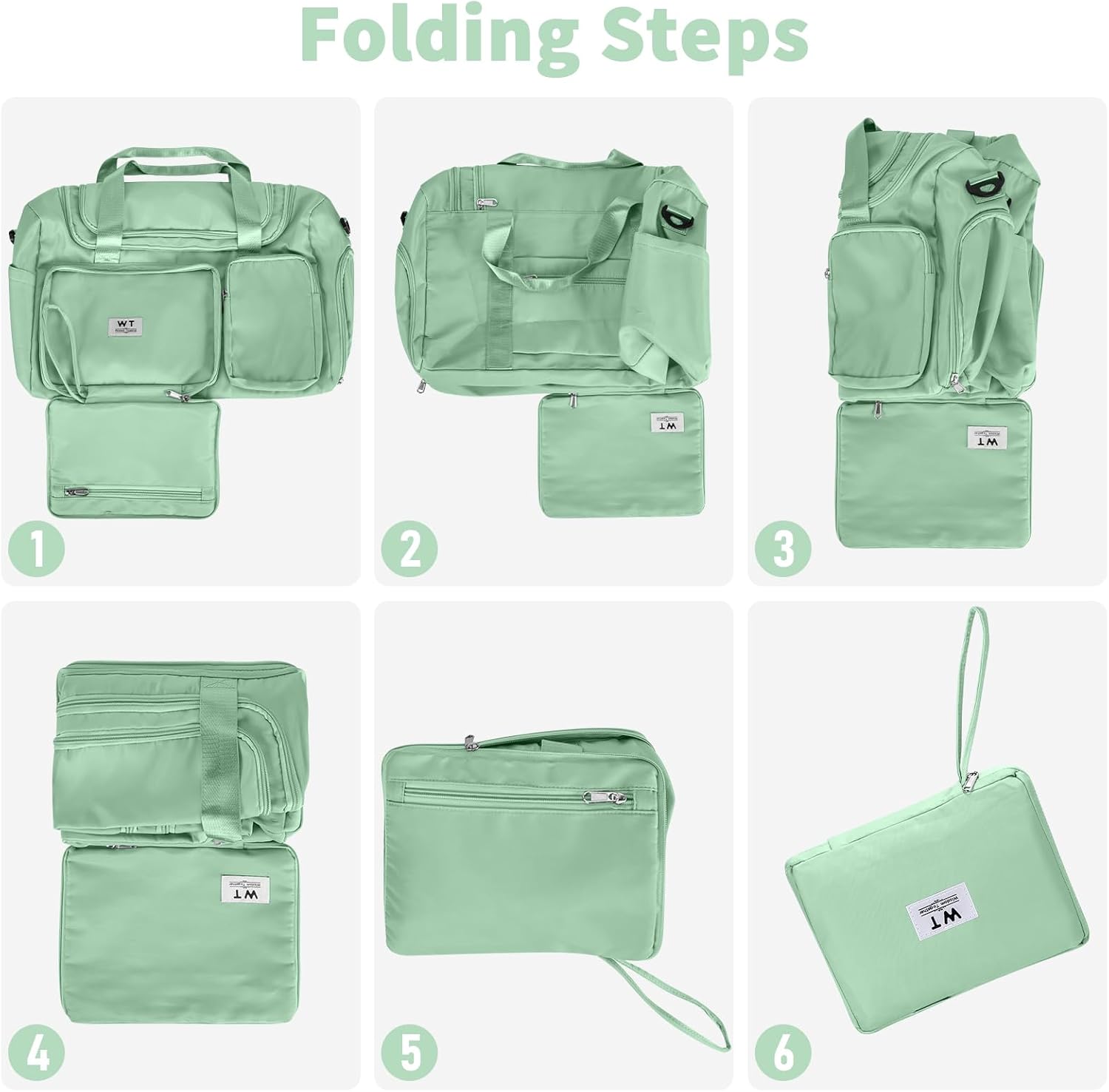 WT Faltbare Reisetasche, Sporttasche, Damen, 35 l, Gepäcktasche, großer Weekender für Herren und Damen (Mintgrün)