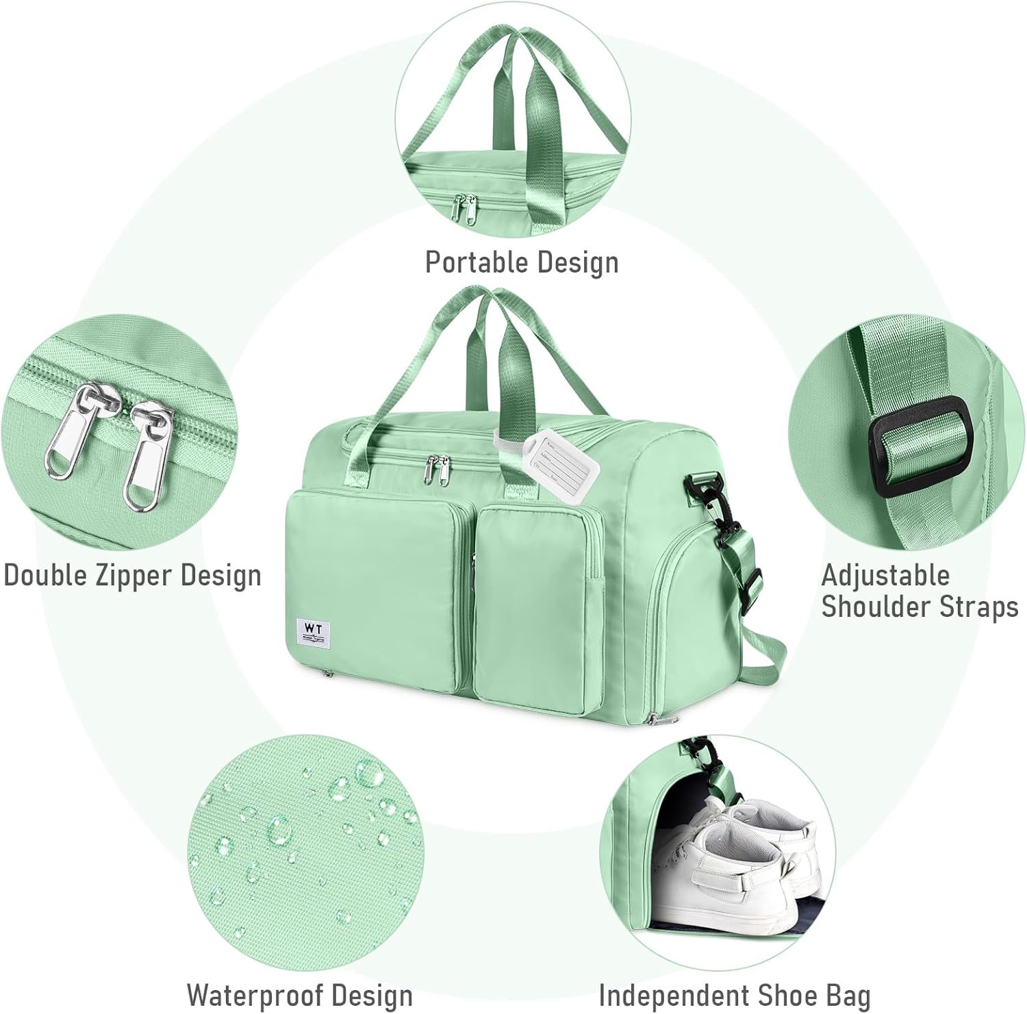 【Premium-Material & wasserdicht & kratzfest】: Die WT Fashion-Reisetasche besteht aus wasserdichtem Oxford-Gewebe, das eine bessere Reißfestigkeit und Wasserbeständigkeit aufweist. Innen und an der Seite befindet sich außerdem eine Nasstasche mit Reißverschluss aus hochdichtem, wasserdichtem Material. Es gibt Aufbewahrungstaschen und separate Schuhtaschen, ein Trocken- und Nasstrennungsdesign mit mehreren Bereichen, leichtgängige Reißverschlüsse und verstärkte Nähte für eine lange Lebensdauer.