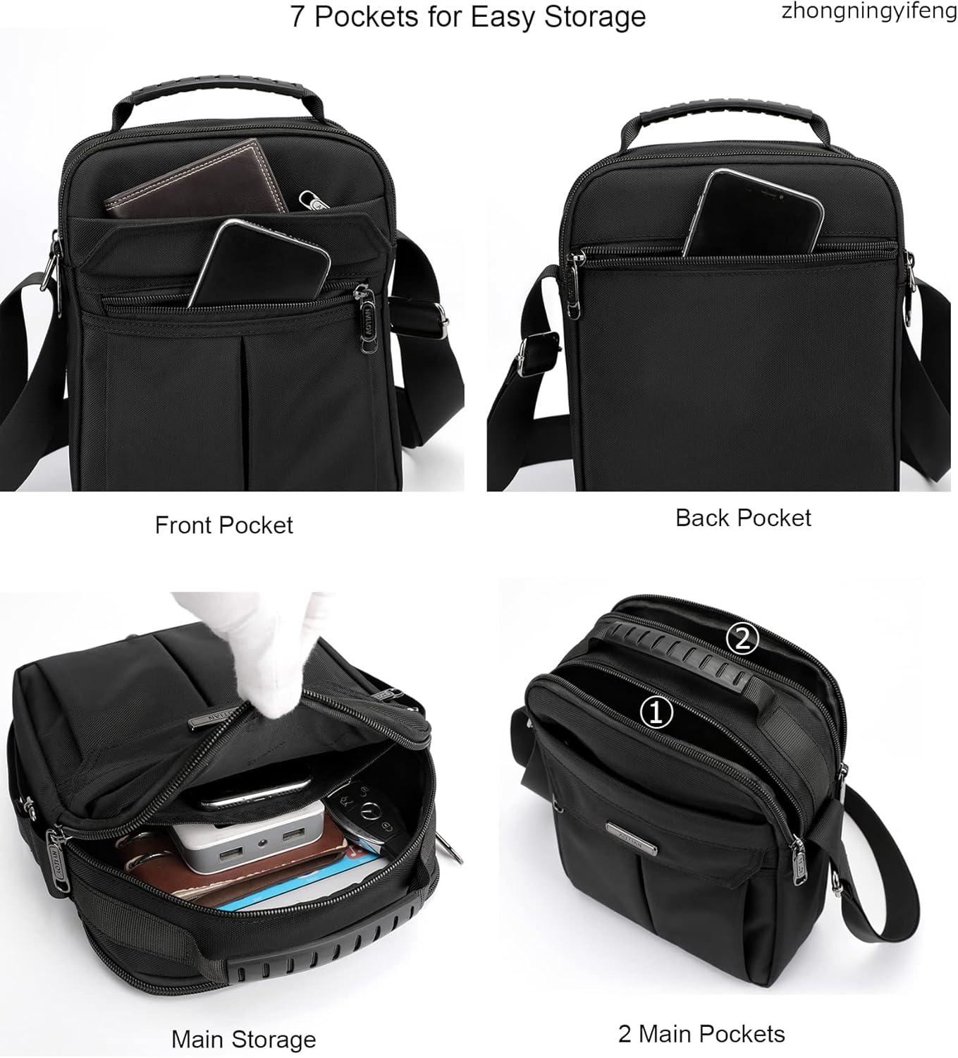 Herren Umhängetasche Nylon Wasserdicht Lässig Schwarz für Arbeit Schule Reisen